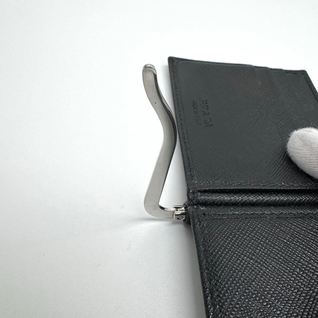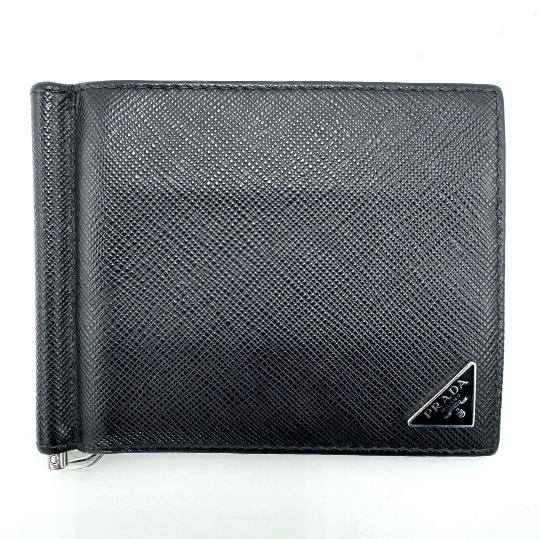 No.539 早い者勝ち☆【美品】PRADA プラダ サフィアーノ マネークリップ 2MN077 トライアングル ロゴ 二つ折り財布 ブラック ユニセックス