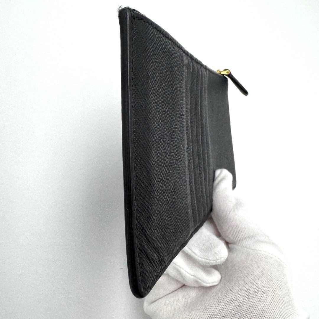 No.547 激レア希少【美品】プラダ サフィアーノ ドキュメントホルダー トライアングル ロゴ ブラック カードケース レディース ゴールド