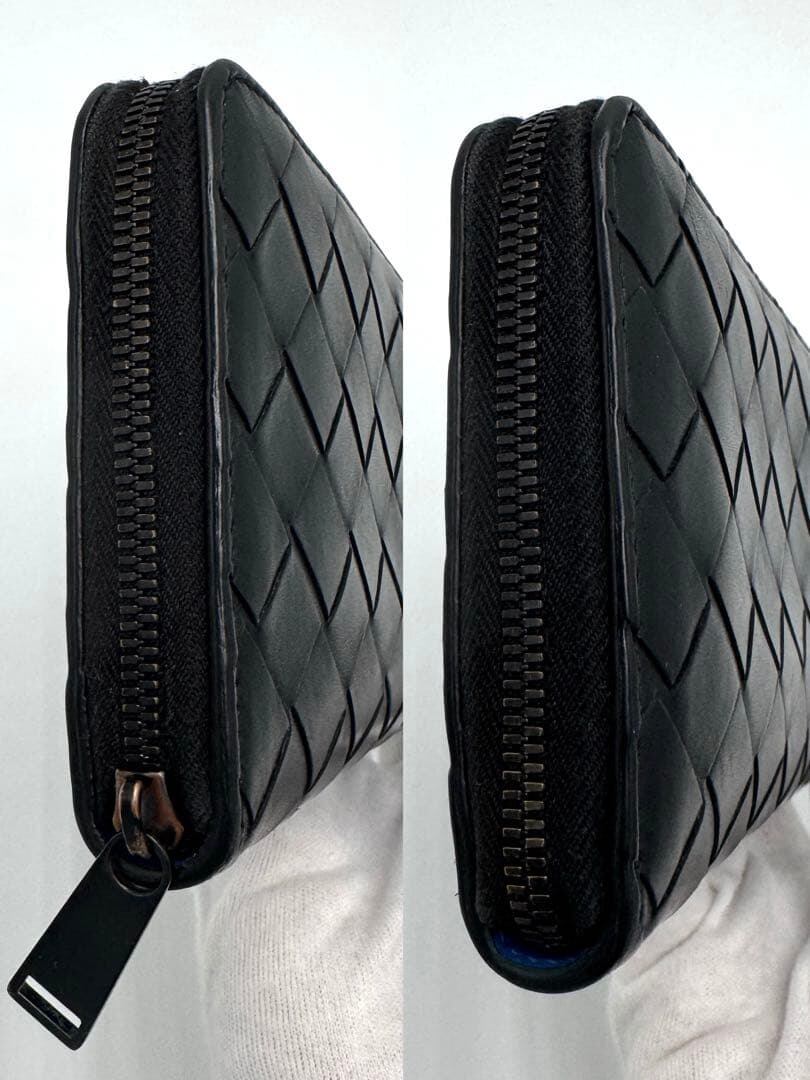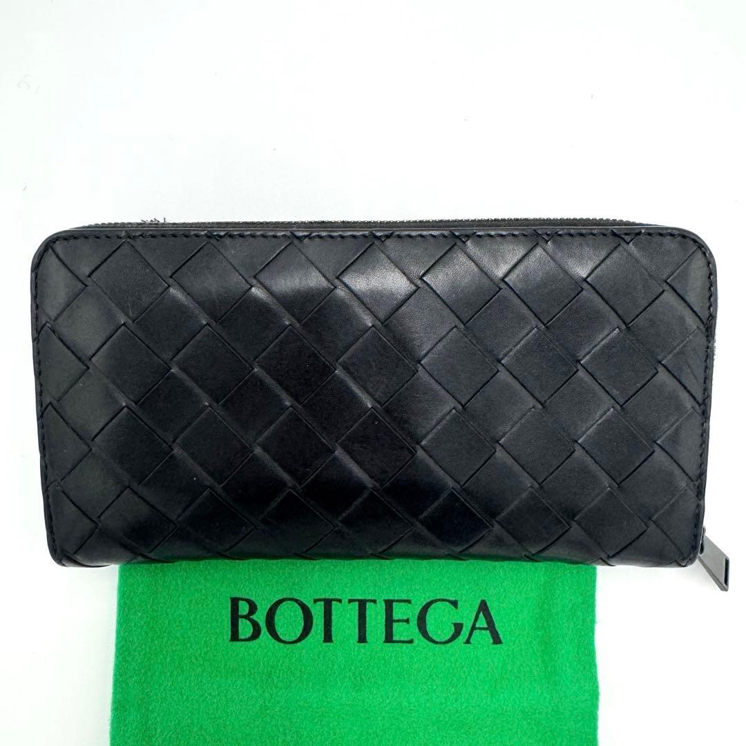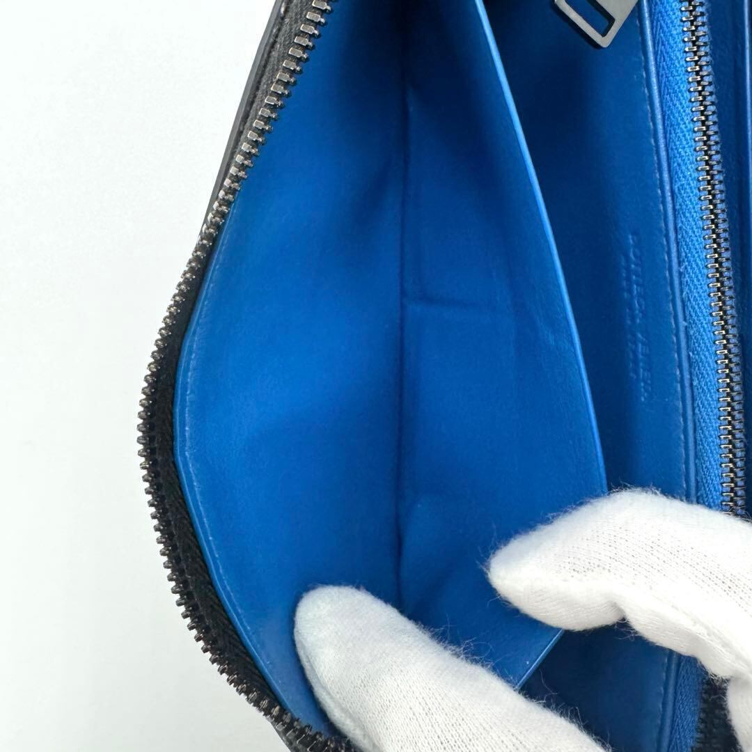 No.549 希少レア☆美品☆ボッテガヴェネタ イントレチャート 長財布 ラウンドファスナー ブラック×ブルー メンズ レディース ユニセックス