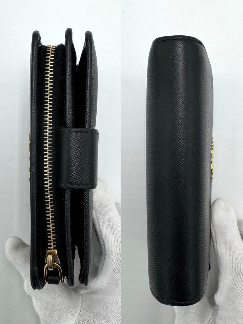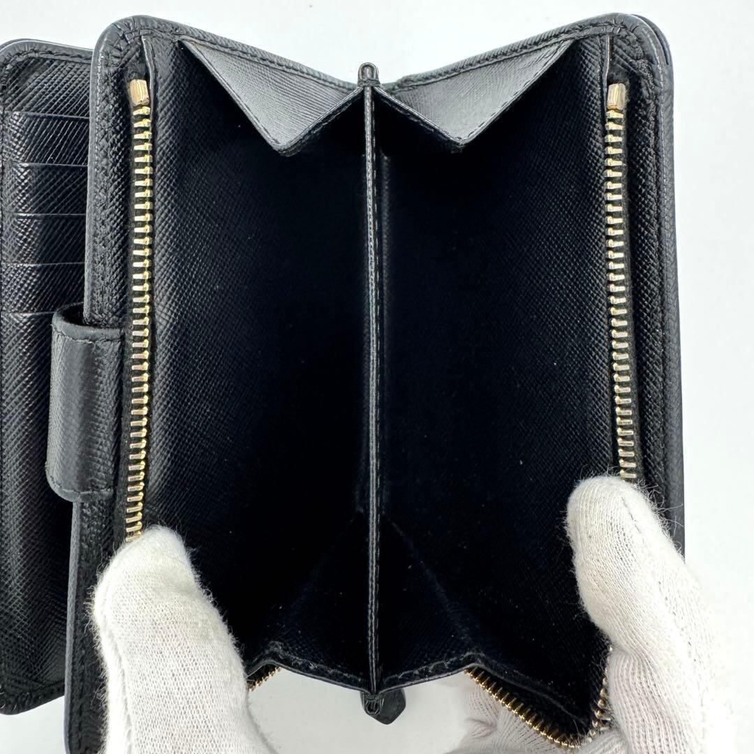 No.579 早い者勝ち☆PRADA プラダ サフィアーノ メタル 二つ折り財布 1ML225 コンパクトウォレット ブラック 付属品完備 レディース ユニセックス