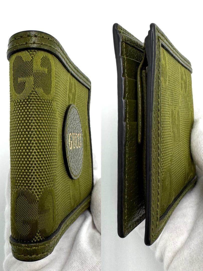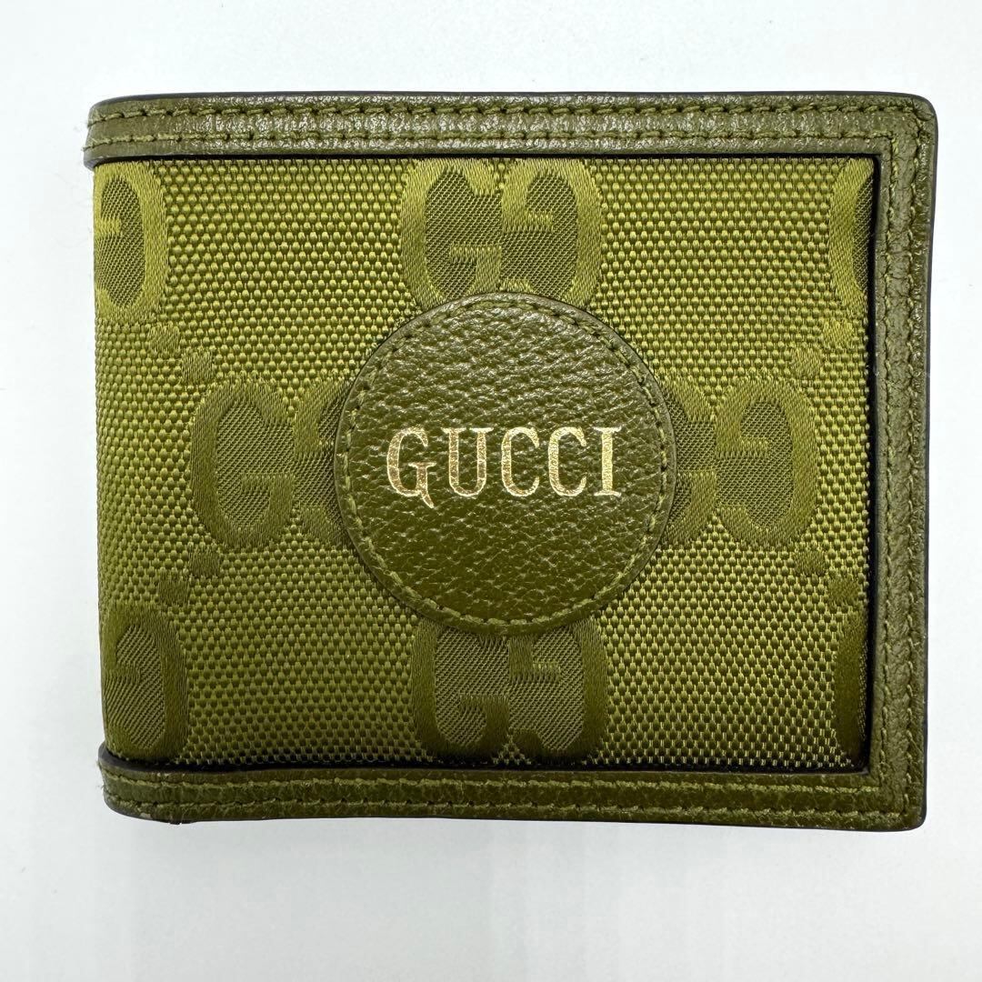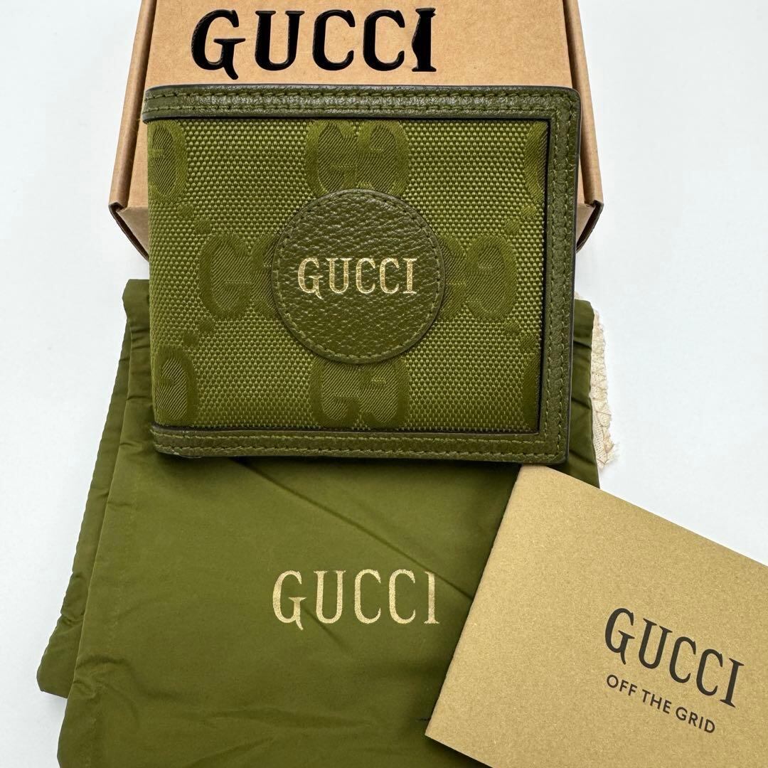 No.582 入手困難☆美品☆GUCCI グッチ オフザグリッド 二つ折り財布 コンパクトウォレット 625574 グリーン 付属品完備 希少 レア メンズ レディース
