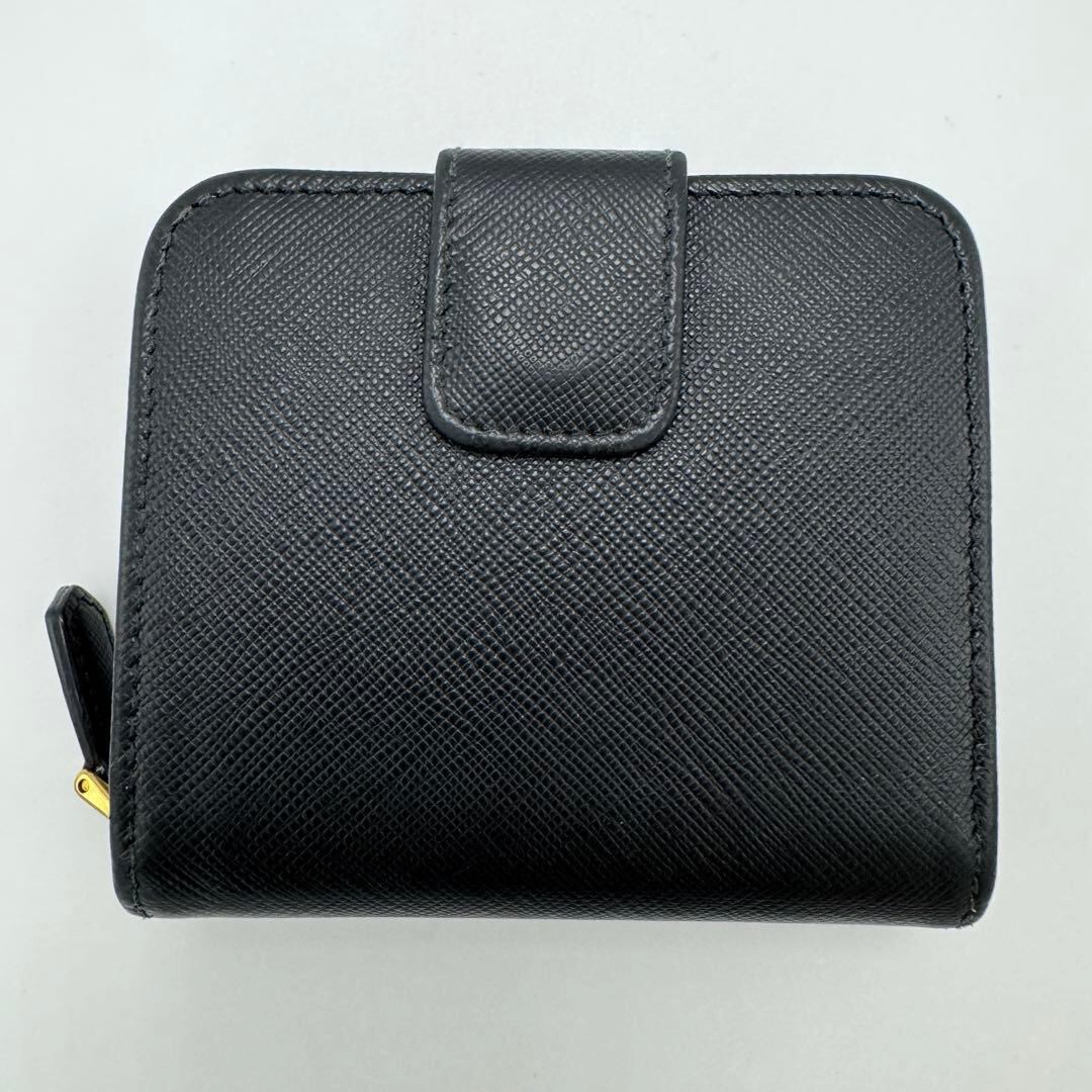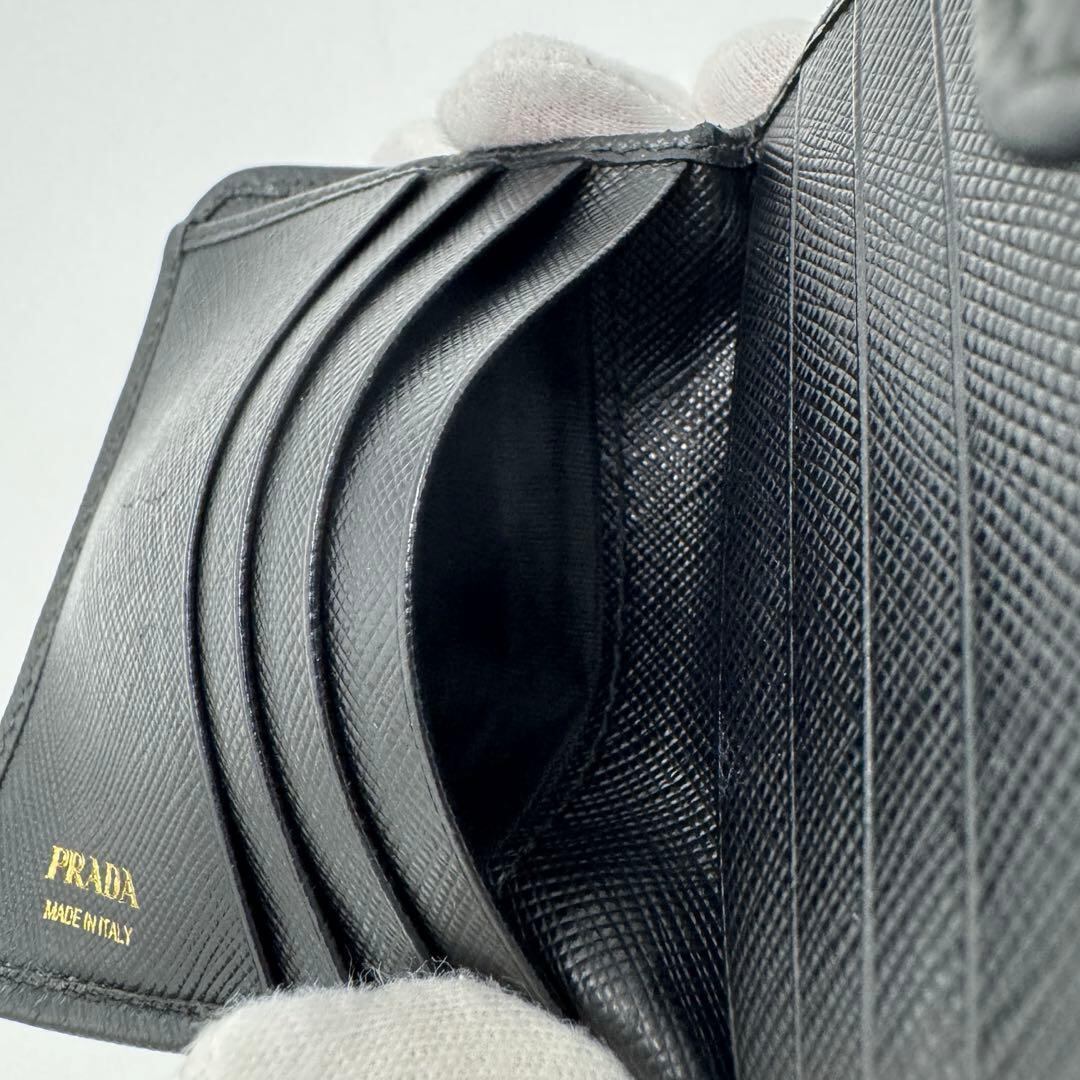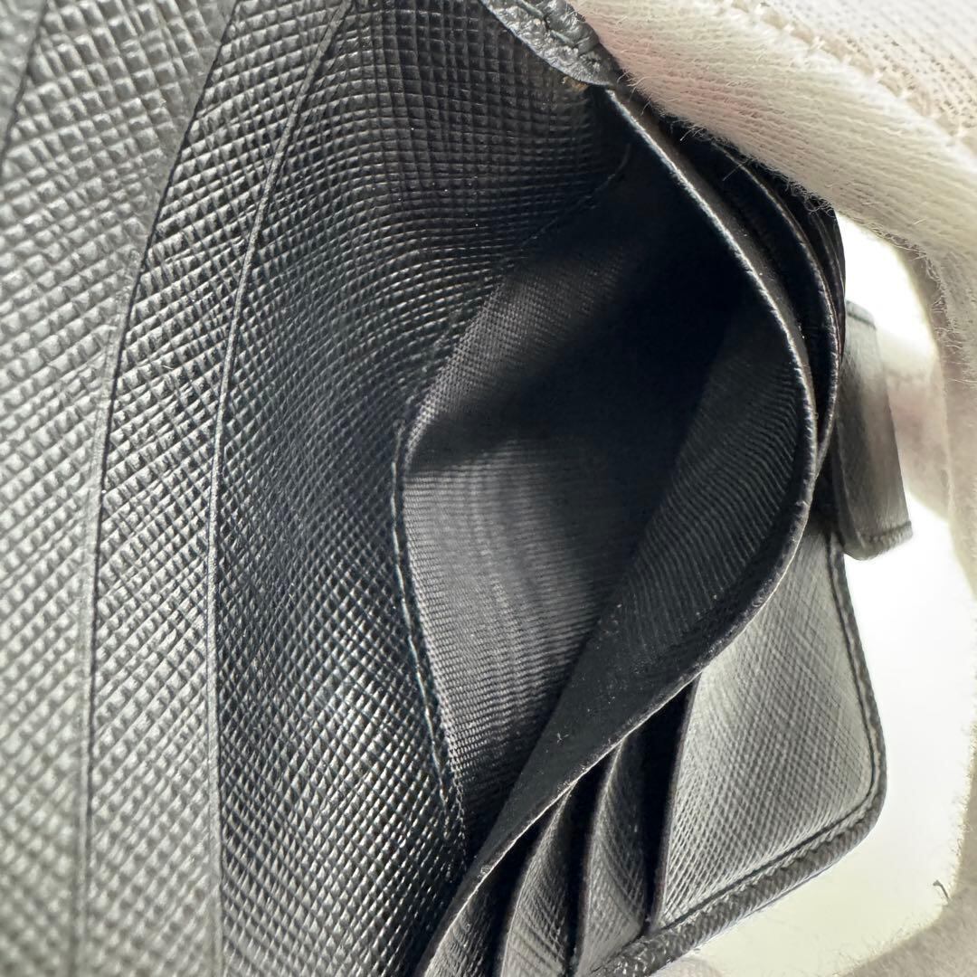 No.589 【美品】PRADA プラダ サフィアーノ メタル 二つ折り財布 1ML522 コンパクトウォレット ブラック レザー レディース ユニセックス
