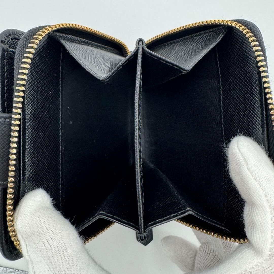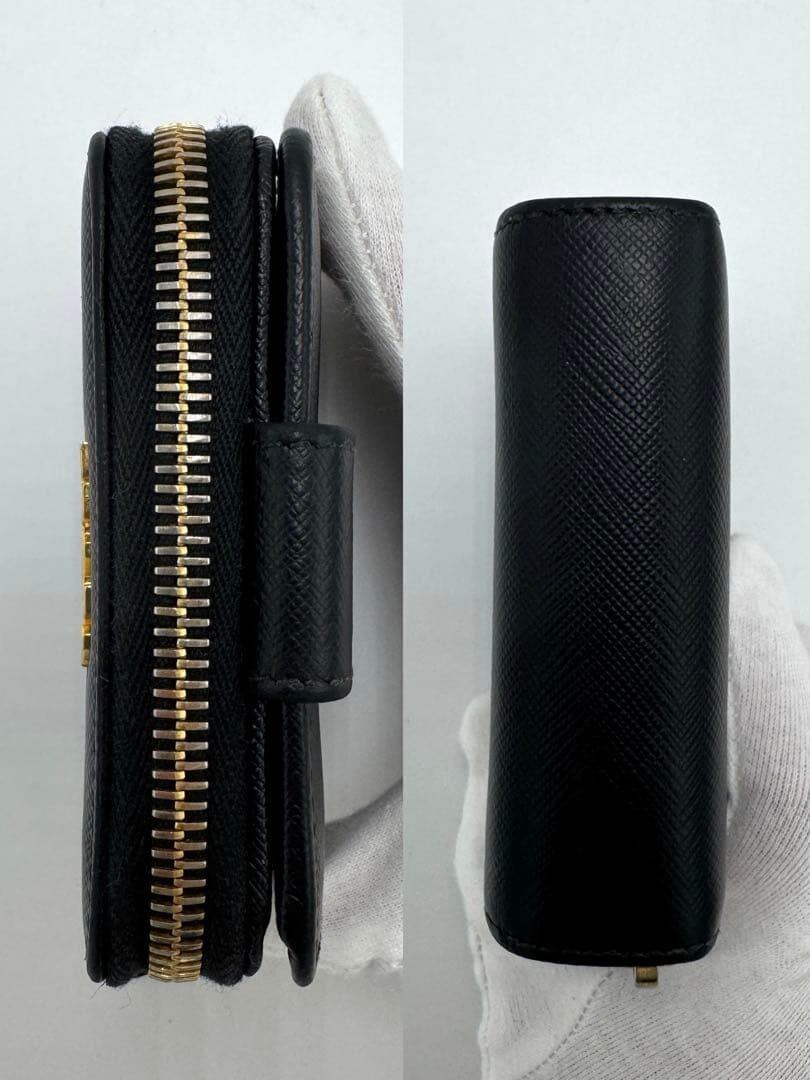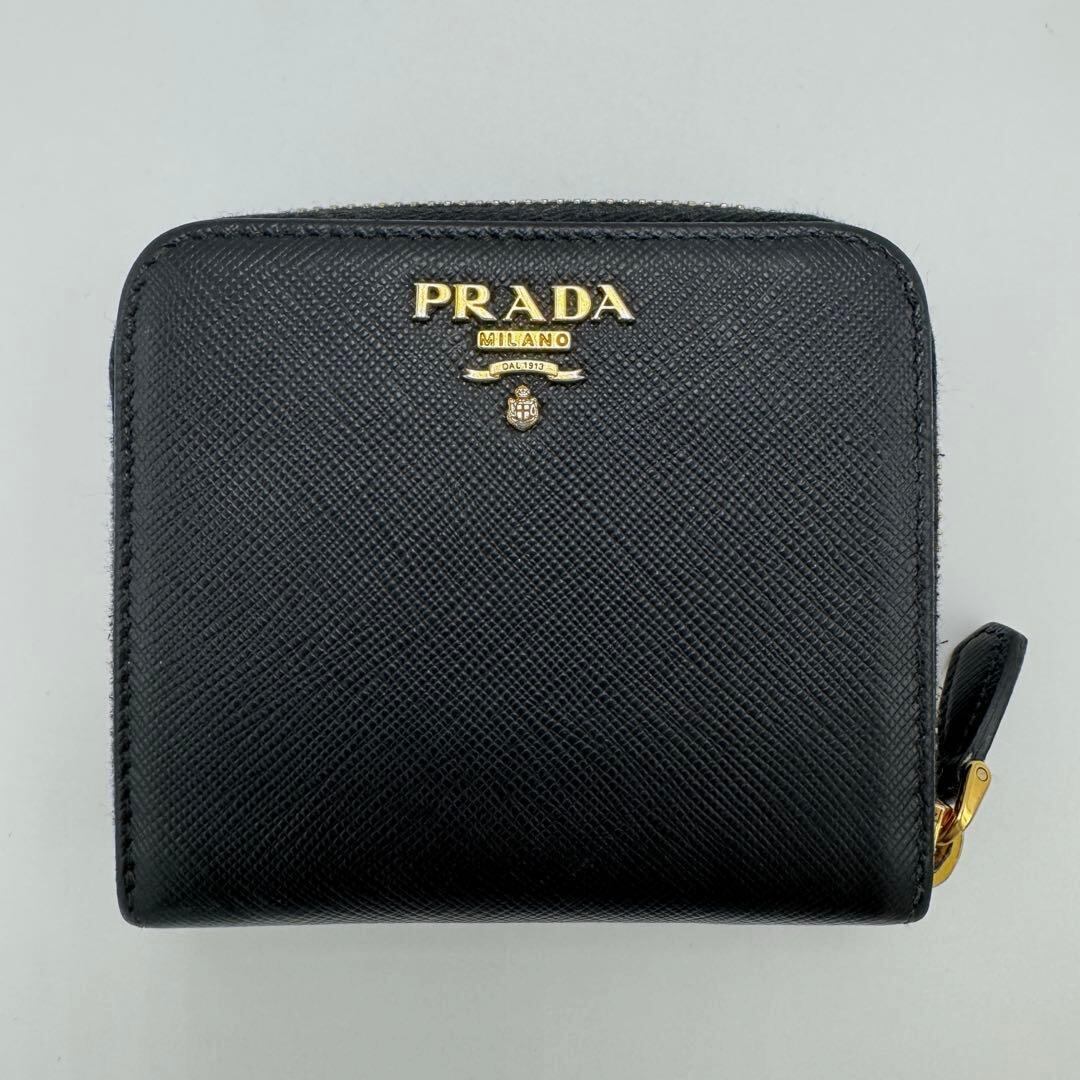 No.589 【美品】PRADA プラダ サフィアーノ メタル 二つ折り財布 1ML522 コンパクトウォレット ブラック レザー レディース ユニセックス