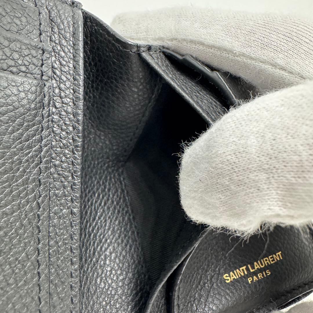 No.593 早い者勝ち☆美品☆サンローランパリ YSLライン 二つ折り財布 670285 コンパクトウォレット ブラック レディース ユニセックス 超人気