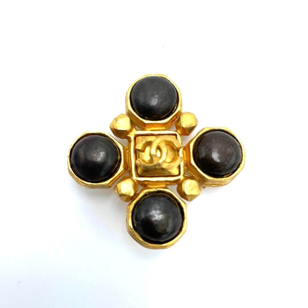 【CHANEL】シャネル ココマーク 97A ブローチ コサージュ アクセサリー レディース ゴールド×ブラックストーン レア 希少