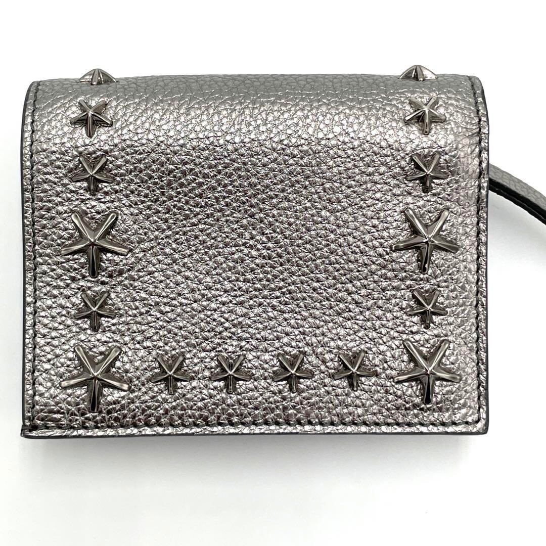 早い者勝ち☆【美品】ジミーチュウ 折り財布 スタースタッズ レザー コンパクトウォレット レディース シルバー