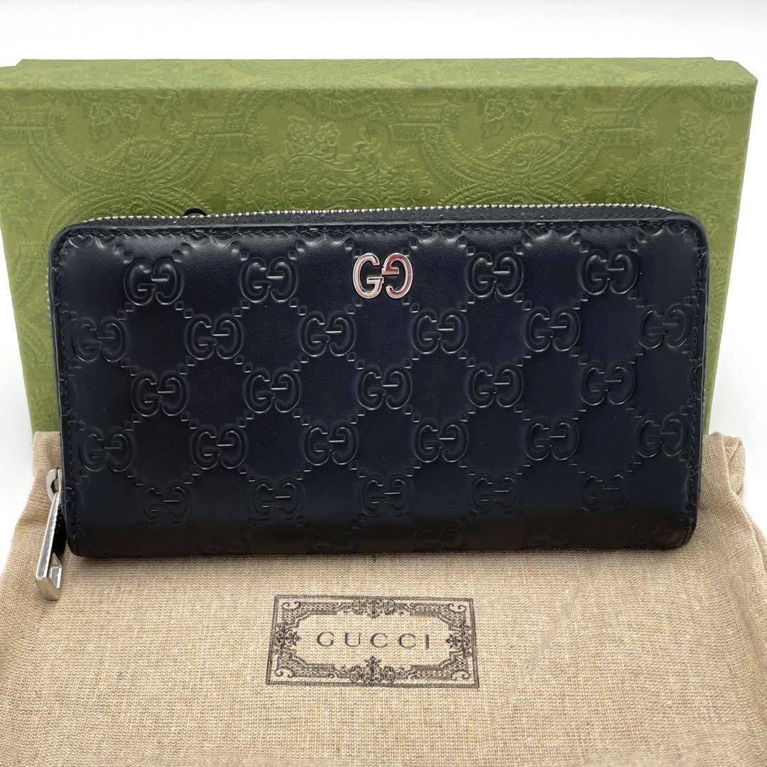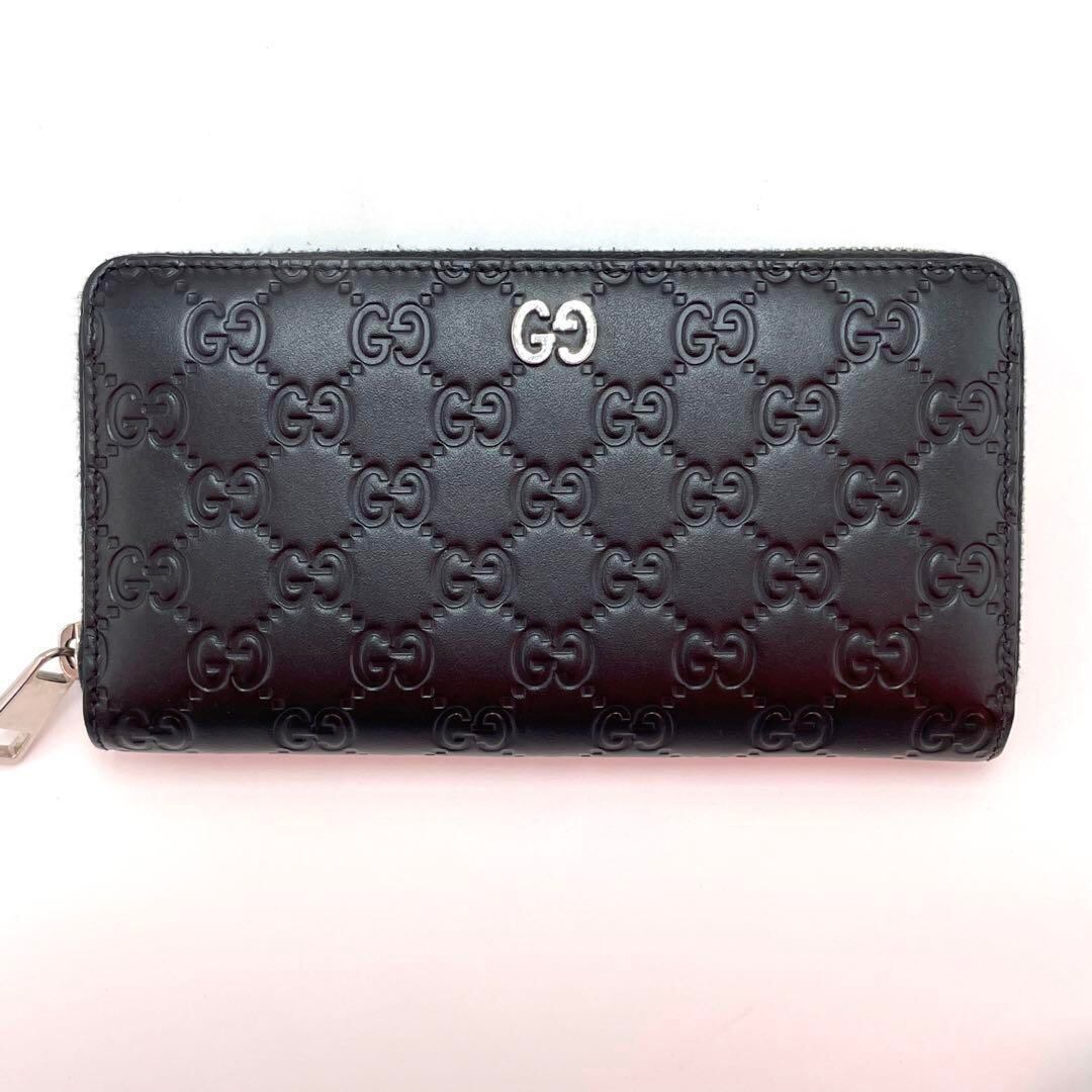 【超美品】Gucci グッチ シグネチャー グッチシマ 長財布 ジップアラウンドウォレット ブラック レザー メンズ レディース ユニセックス