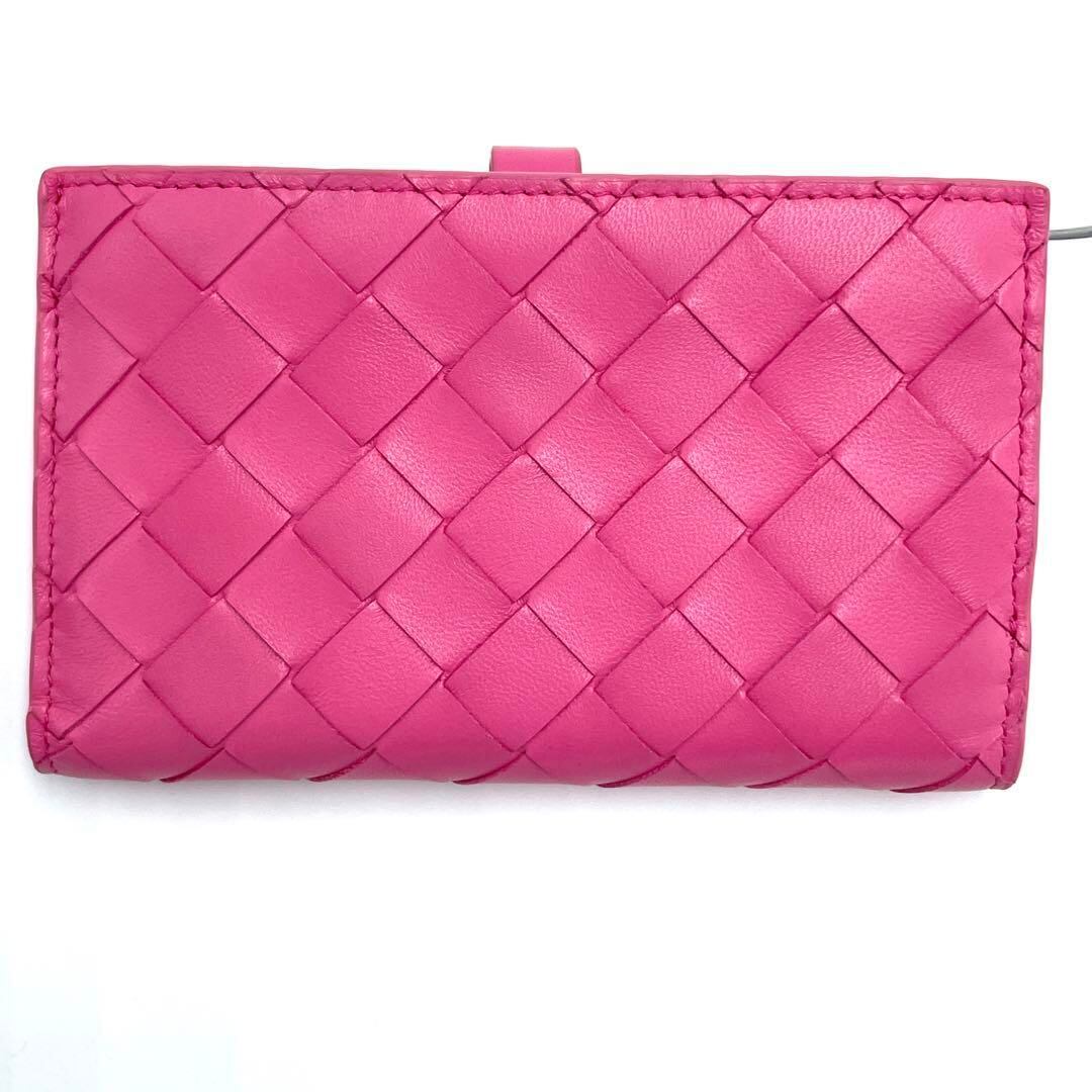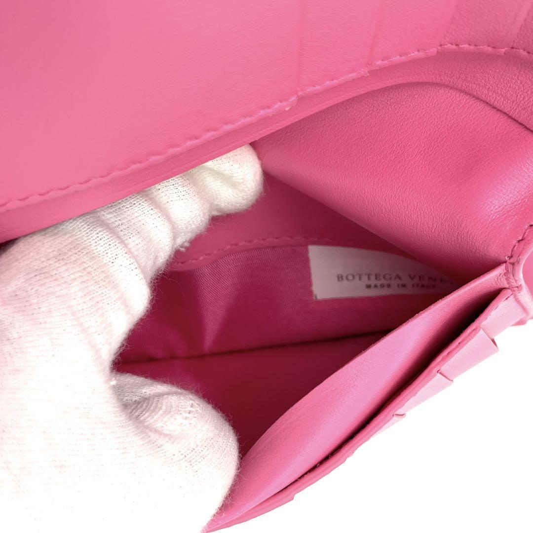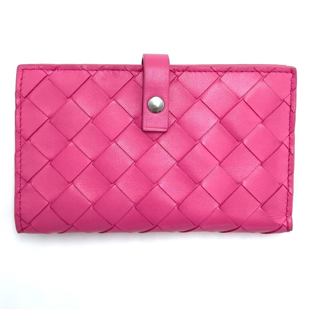 【新品同様】早い者勝ち☆BOTTEGAVENETA ボッテガヴェネタ イントレチャート コンパクトウォレット ピンク レザー 二つ折り財布 レディース