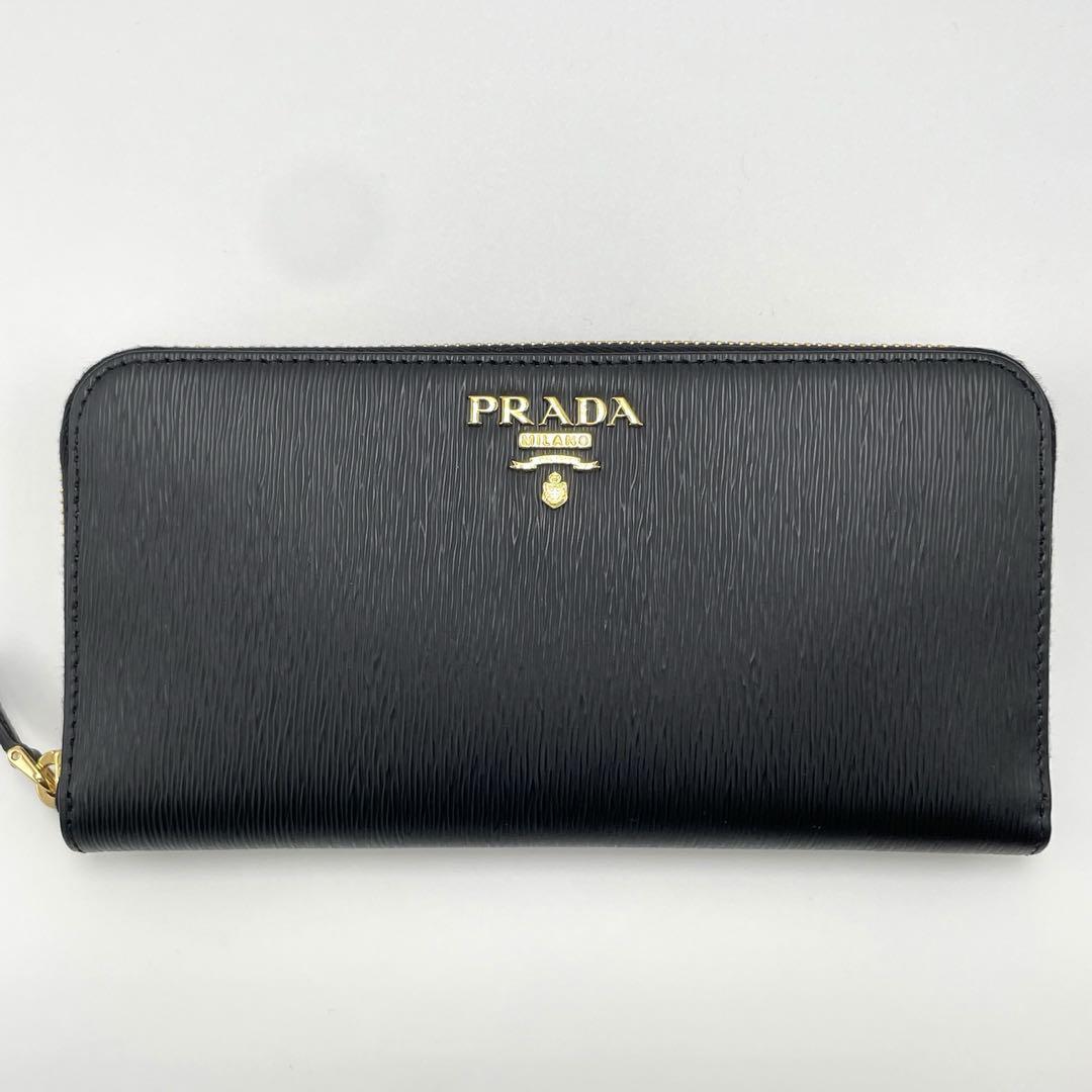No.117 高級人気商品【新品同様】PRADA プラダ ラウンドジップウォレット 長財布 1ML506 レザー ブラック レディース メンズ ユニセックス