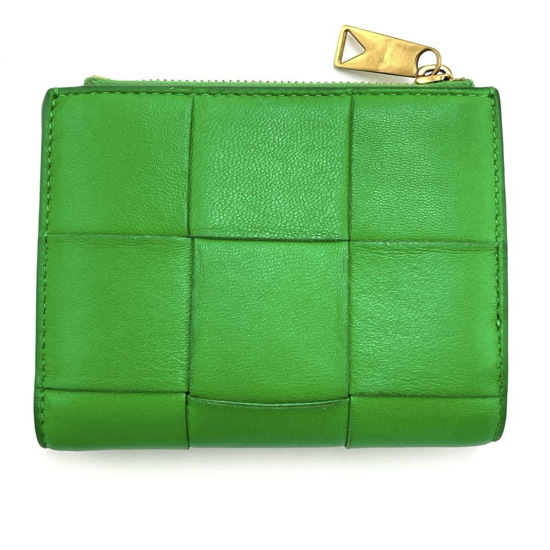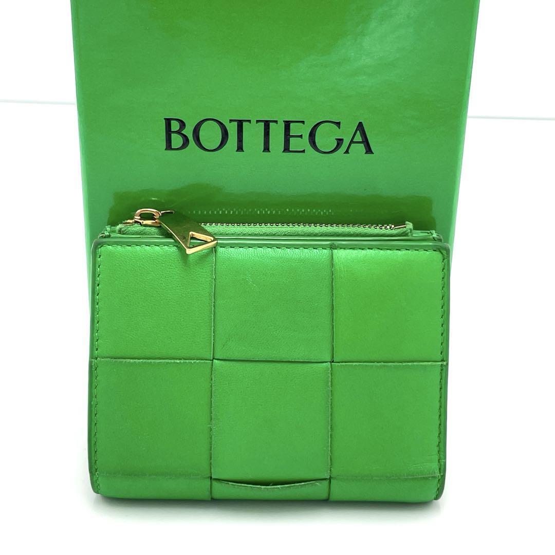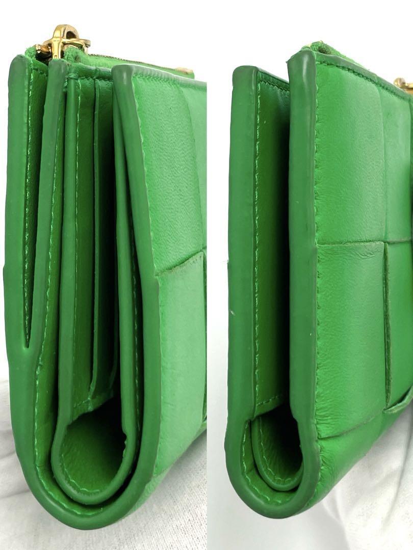 No.147 早い者勝ち☆【美品】ボッテガヴェネタ マキシイントレチャート コンパクトウォレット グリーン 二つ折り財布 メンズ レディース
