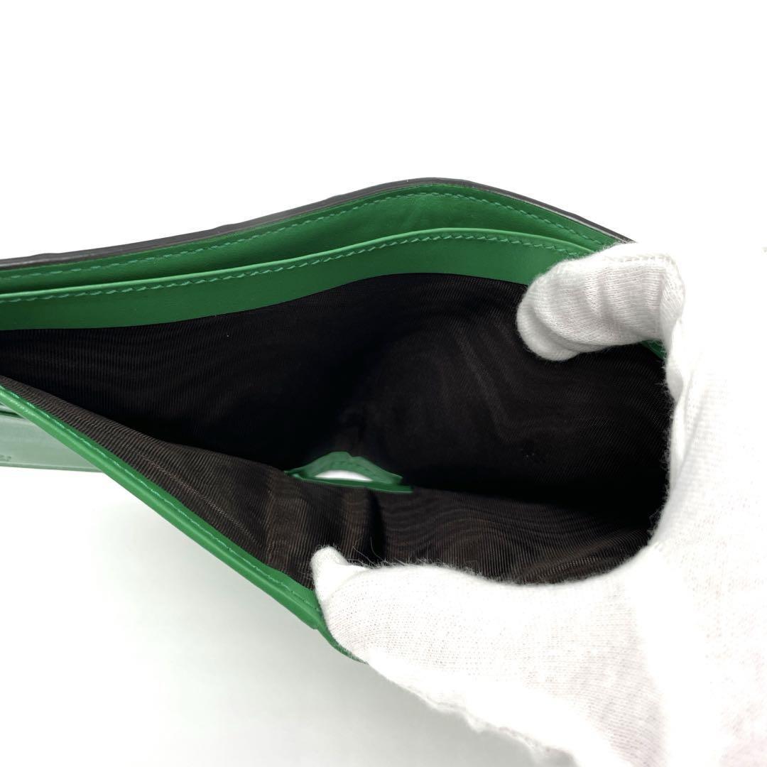 No.152【超美品】GUCCI グッチ 二つ折り財布 GGエンボス 625555 ラバーエフェクト コンパクトウォレット グリーン メンズ レディース
