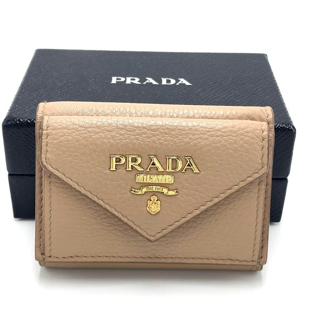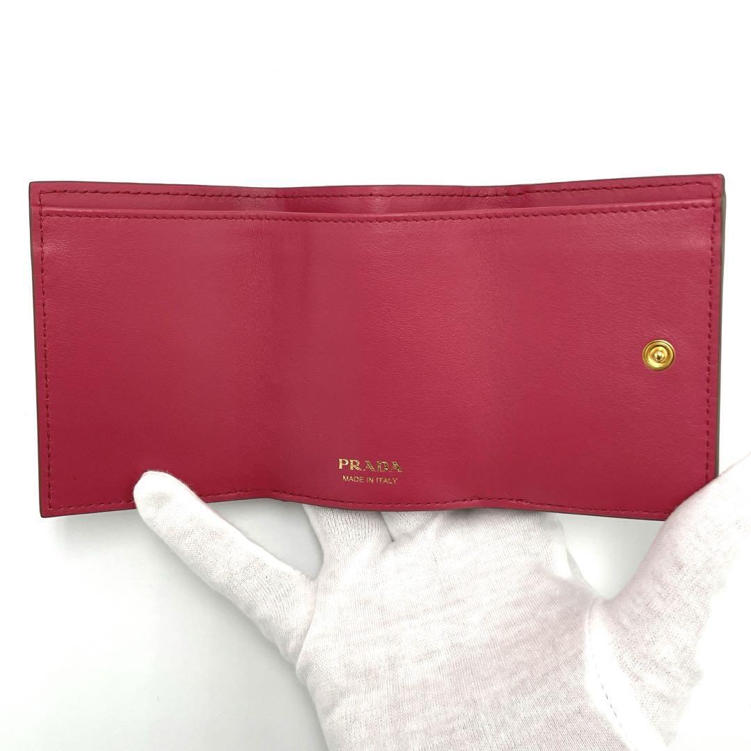 No.165 早い者勝ち☆【美品】PRADA プラダ 三つ折り財布 コンパクトウォレット レッド×ベージュ1MH021 マルチカラー レディース 財布 小物