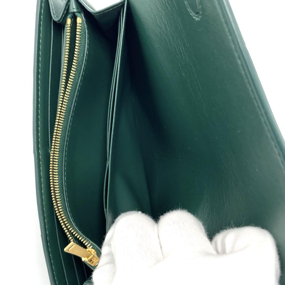 No.189【超美品】ボッテガヴェネタ マキシ イントレチャート カセット フラップウォレット 長財布 ダークグリーン レディース ユニセックス