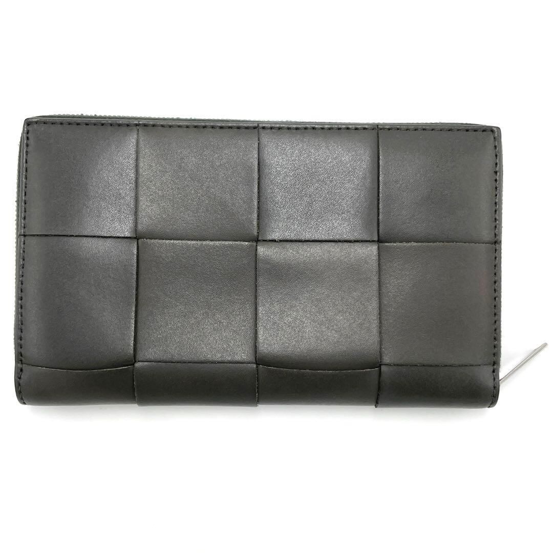 No.190 ボッテガヴェネタ マキシイントレチャート カセット ラウンドジップウォレット 長財布 グレー レザー メンズ レディース 現行品