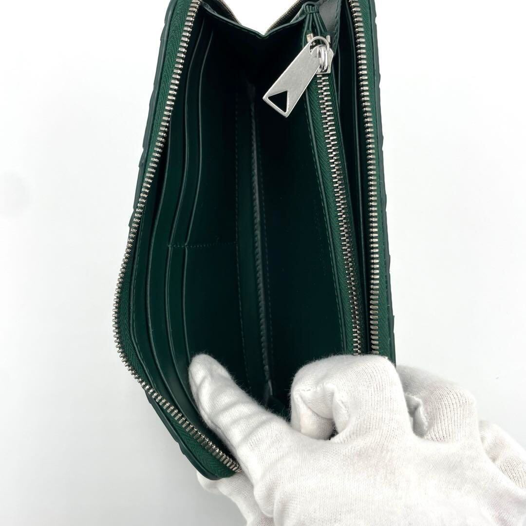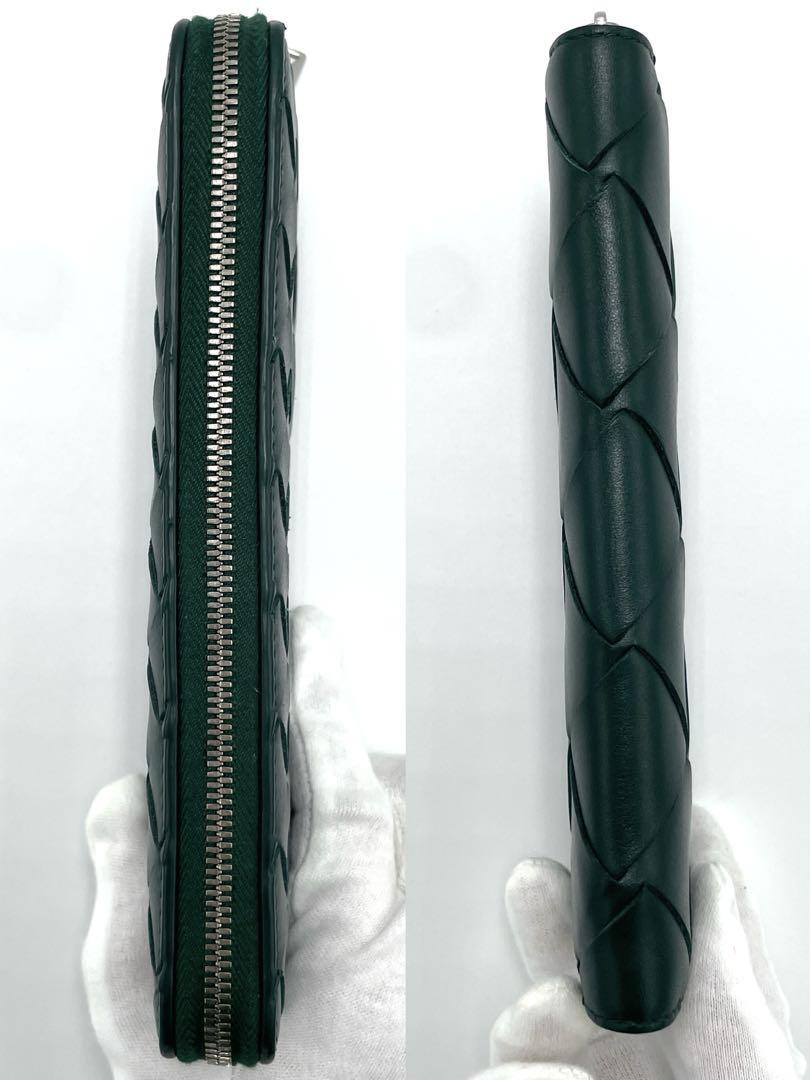 No.191 超人気【超美品】ボッテガヴェネタ イントレチャート ラウンドジップウォレット 長財布 グリーン メンズ レディース 現行品 レア