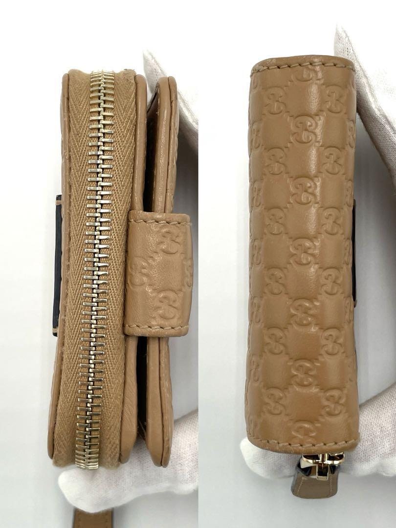 No.197 早い者勝ち☆美品 GUCCI グッチ 二つ折り財布 コンパクトウォレット マイクログッチシマ 449395 ブラウン ベージュ レディース Ⓖ印