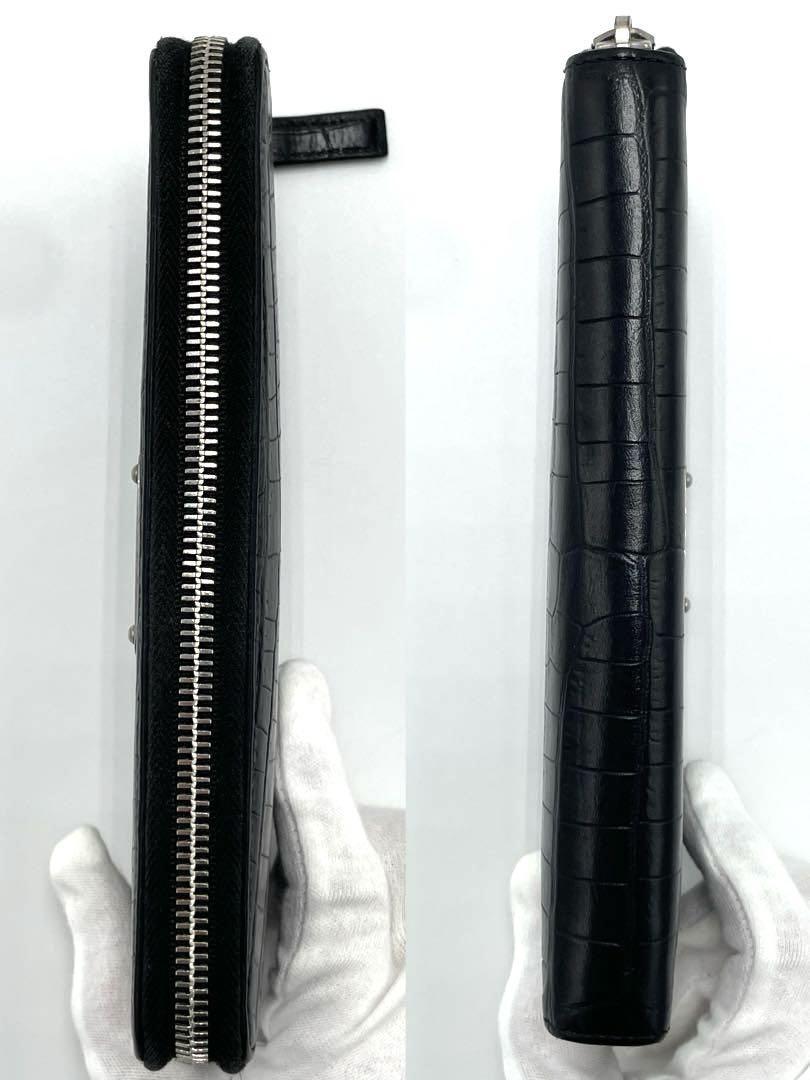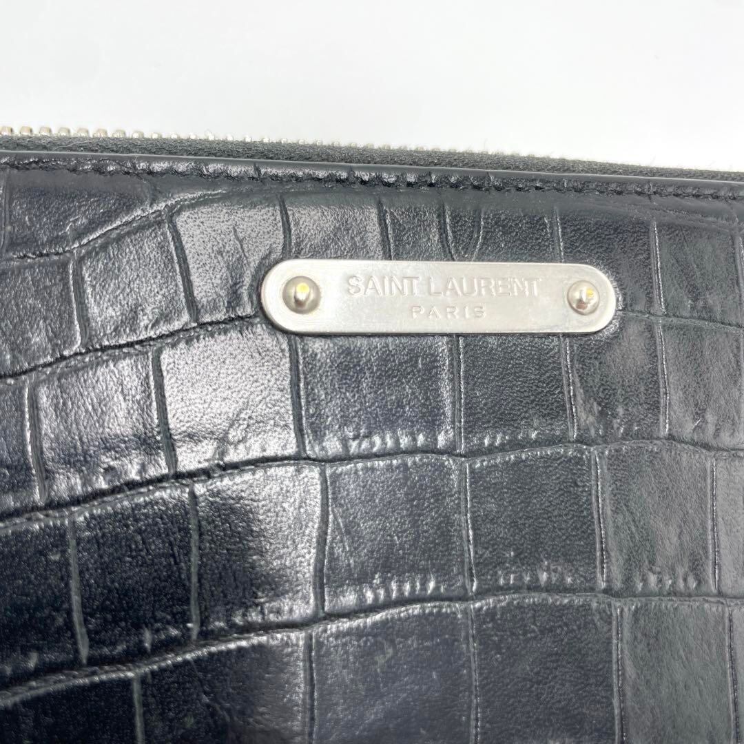 No.198 レア商品☆SAINTLAURENT サンローラン ブラック 長財布 クロコ型押し ラウンドジップ INN462359 ブラック メンズ ユニセックス