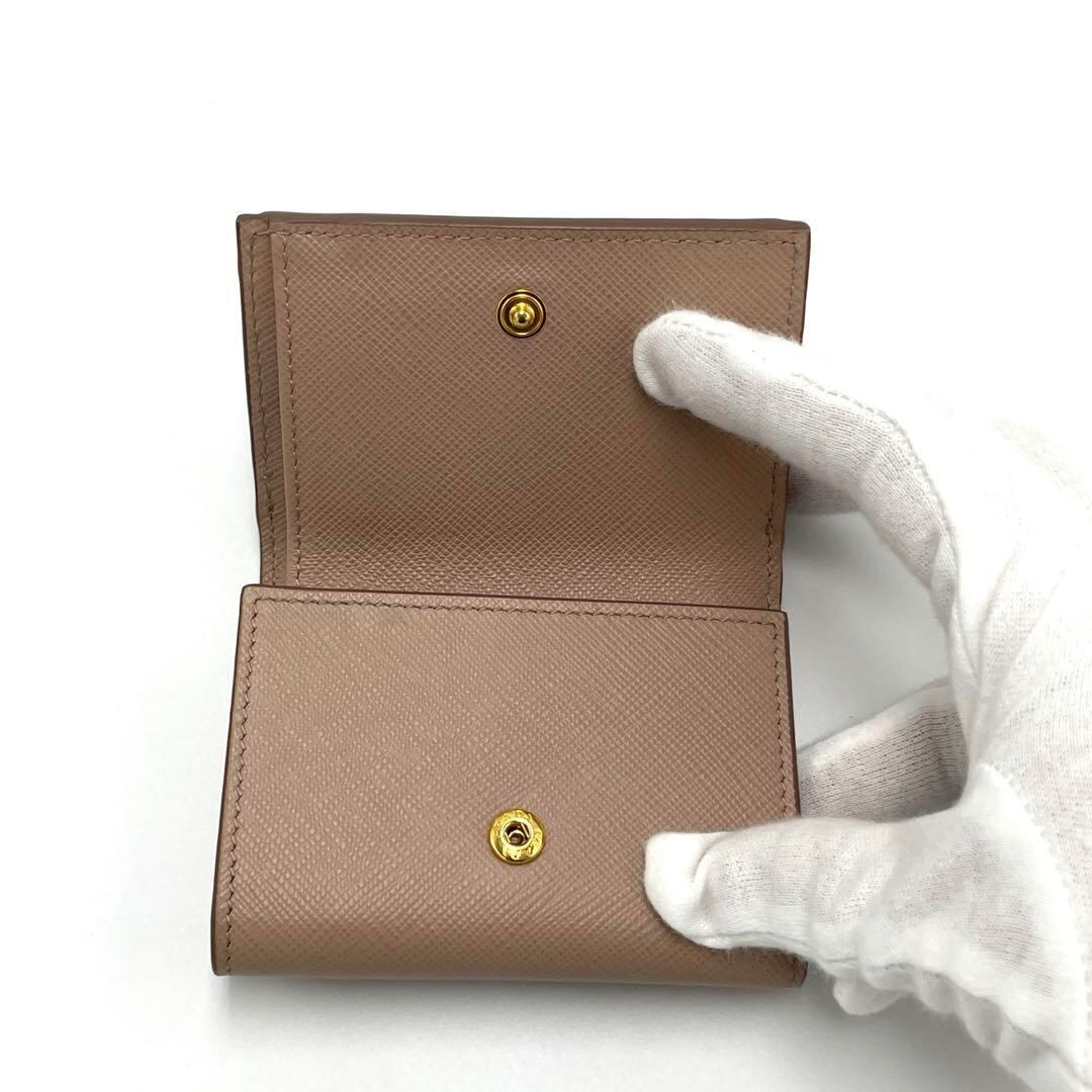 No.202 早い者勝ち☆【超美品】PRADA プラダ 三つ折り財布 コンパクトウォレット サフィアーノメタル 1MH021 レザー ベージュ レディース