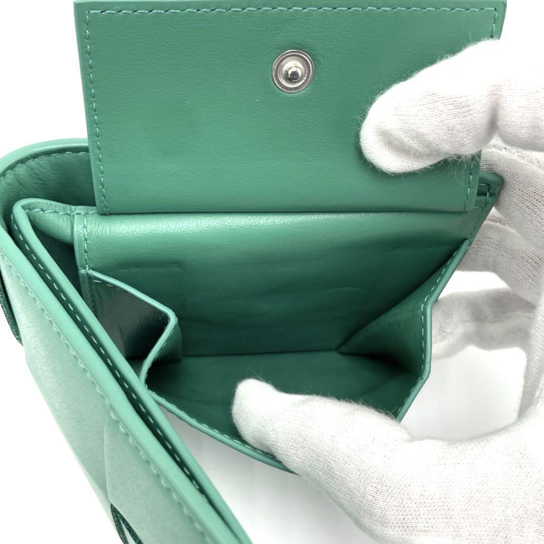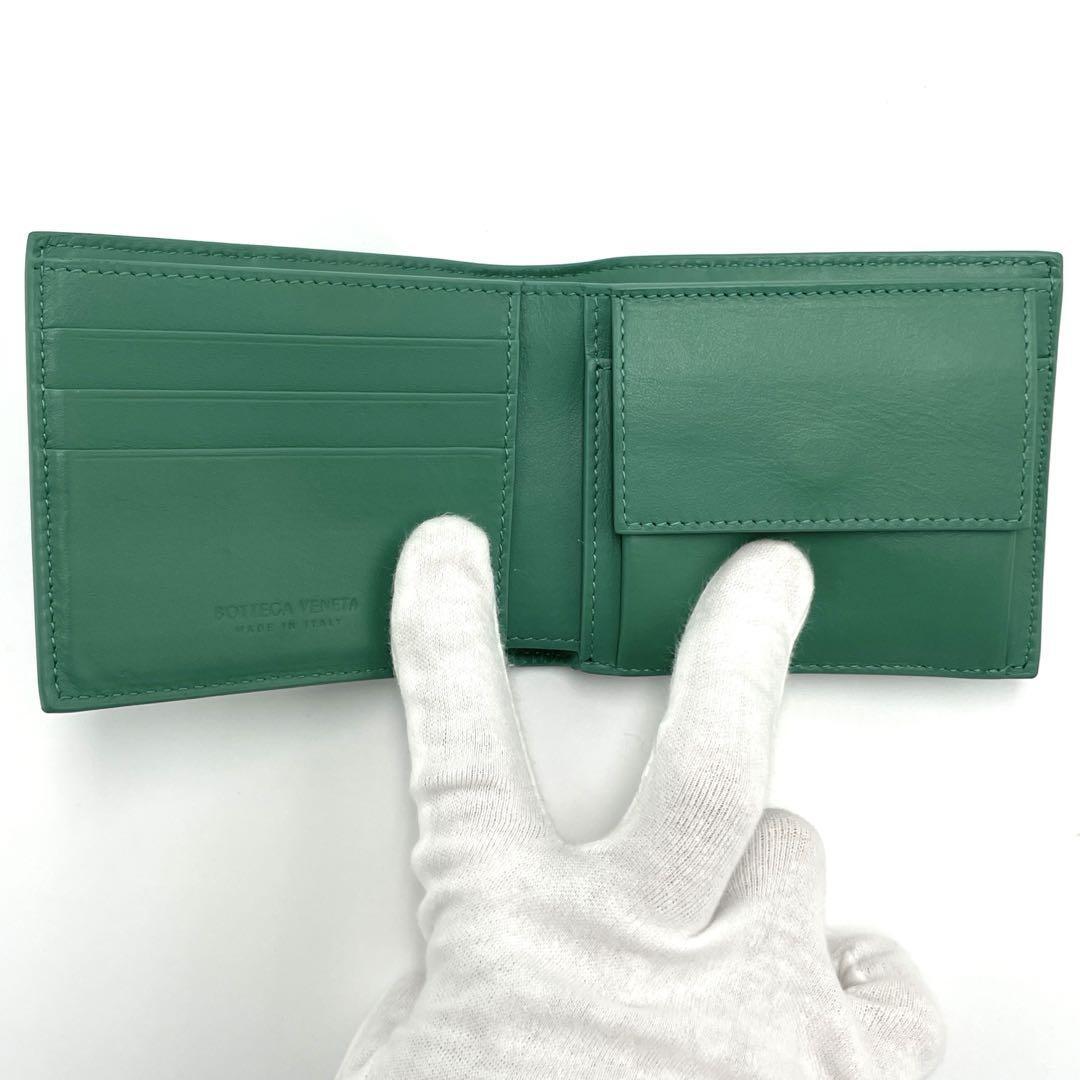No.205 超美品 ボッテガヴェネタ 二つ折り財布 イントレチャート カセット コンパクトウォレット グリーン メンズ レディース ユニセックス