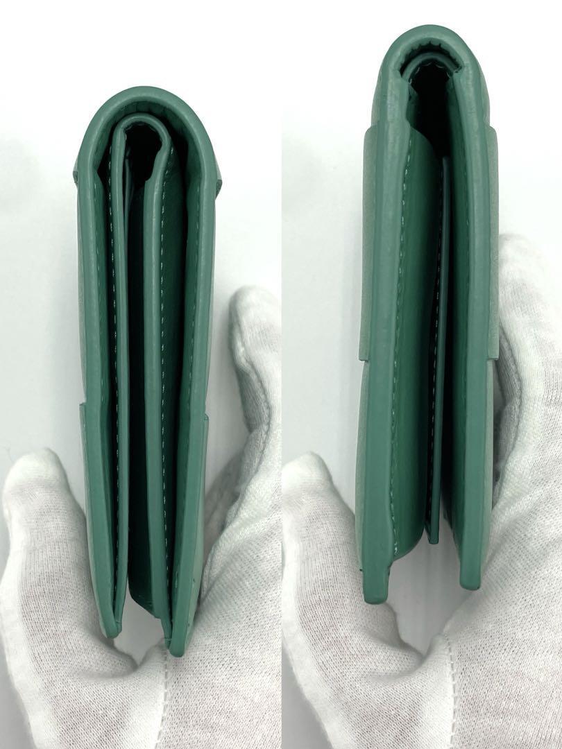 キルティングデザインのグリーンレザー二つ折り財布。