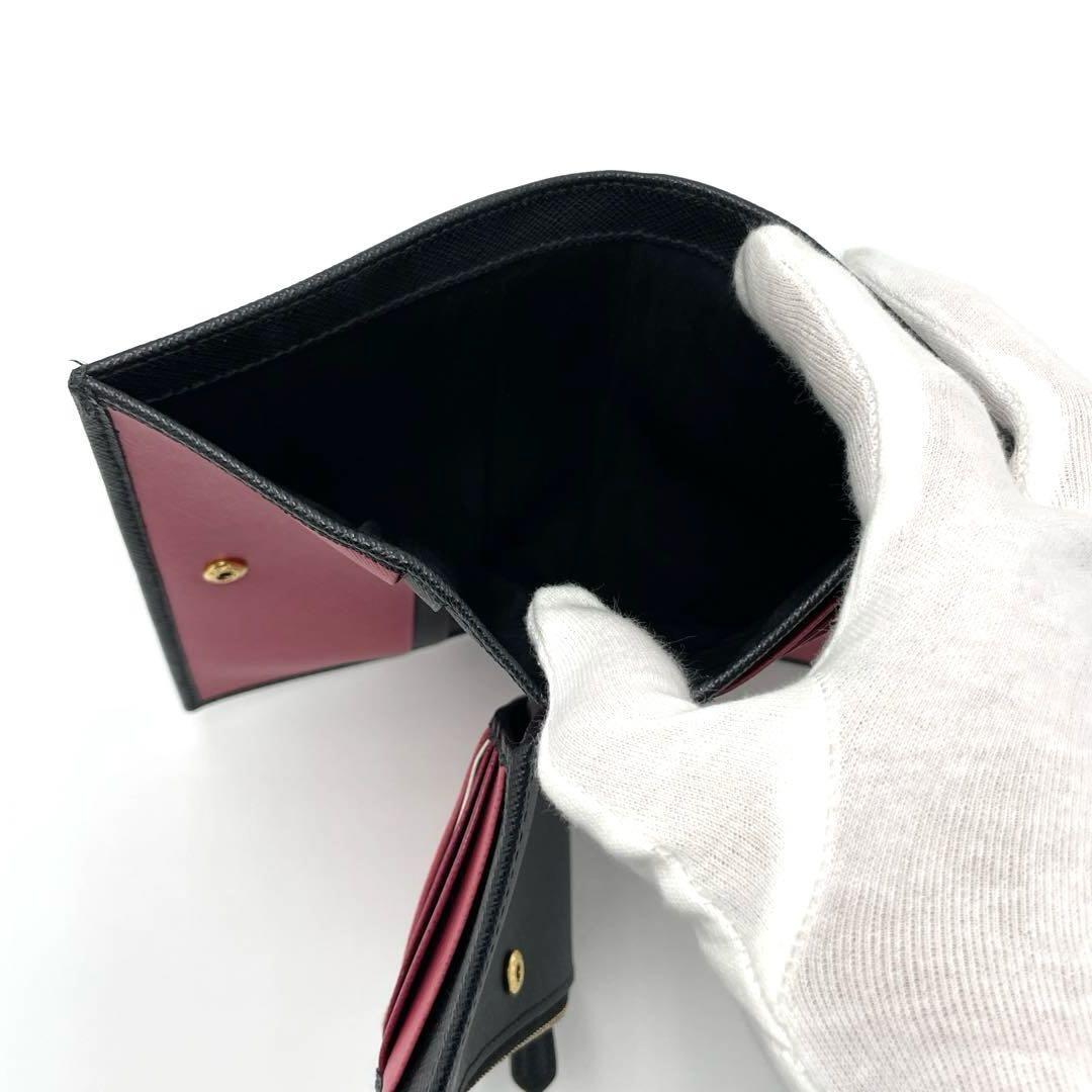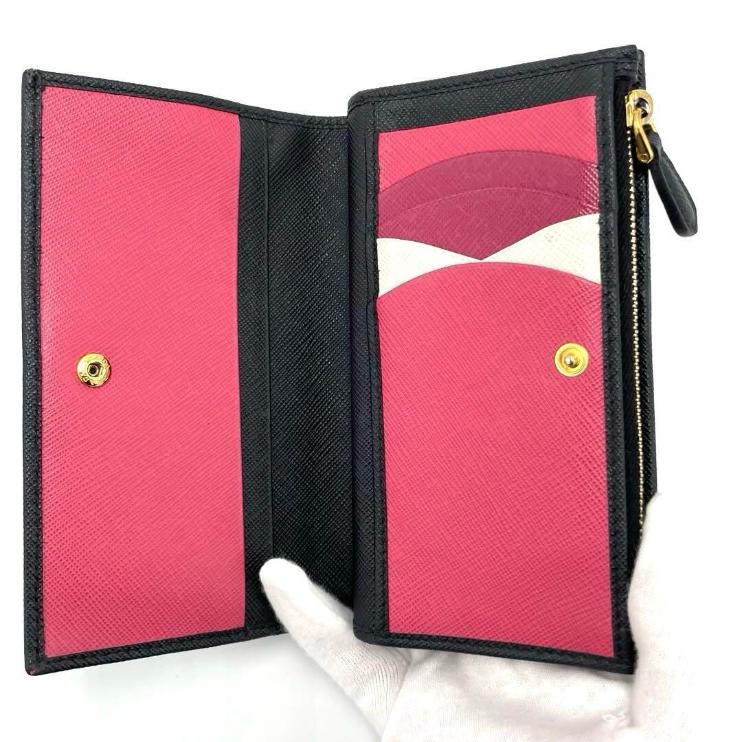 No.207 超人気商品☆美品☆PRADA プラダ 二つ折り財布 1ML009 マルチカラー ブラック×ピンク×レッド×ホワイト レディース ユニセックス