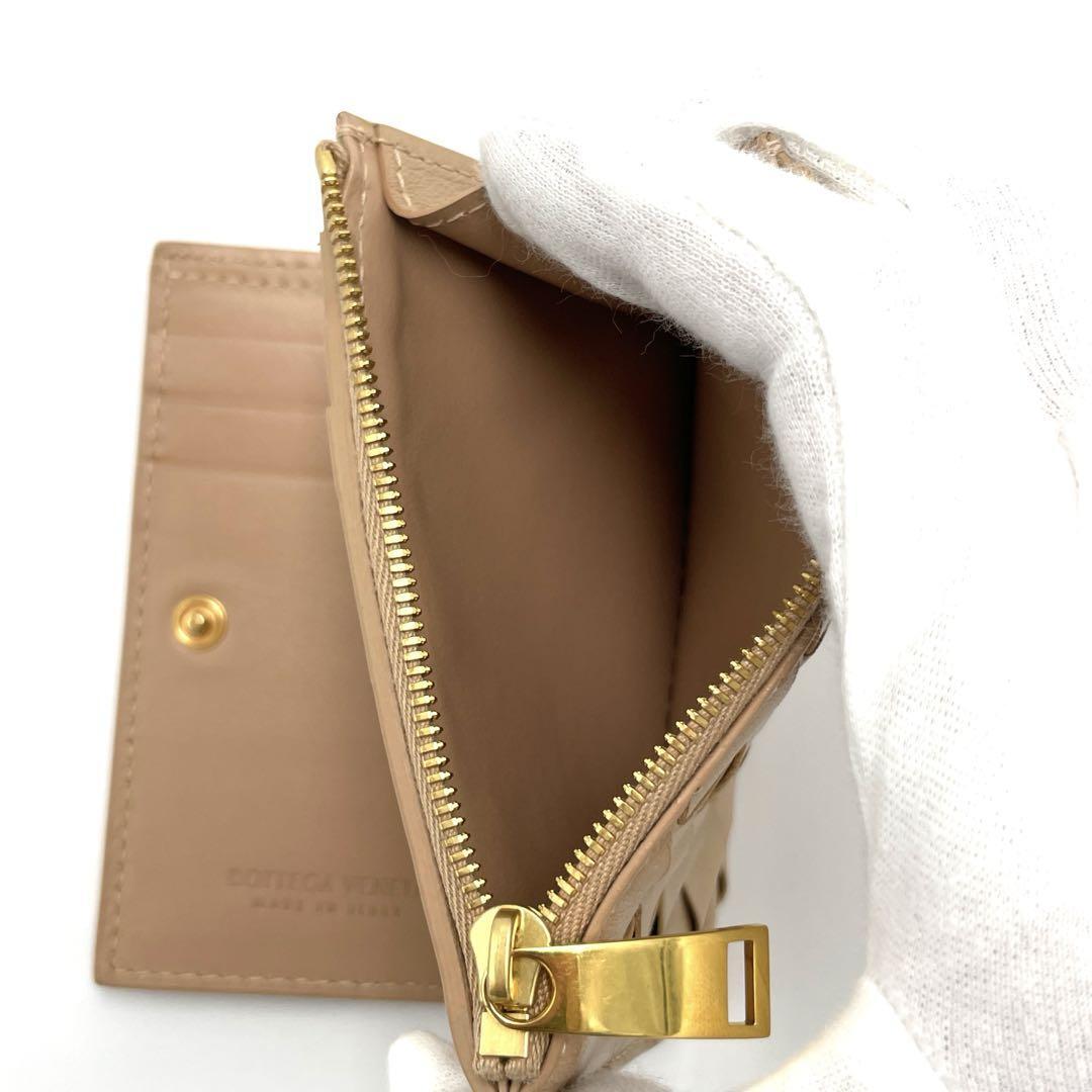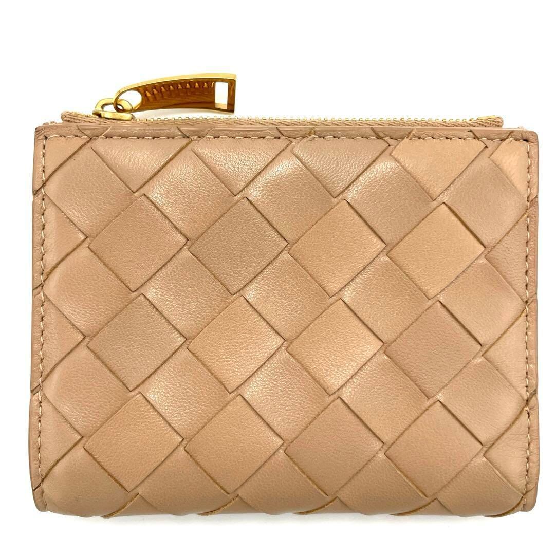 No.213 人気商品☆【美品】BOTTEGAVENETA ボッテガヴェネタ 二つ折り財布 コンパクトウォレット ベージュ レディース ゴールド 小銭入れ付
