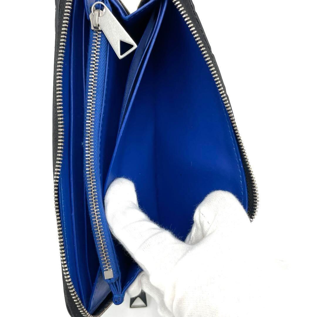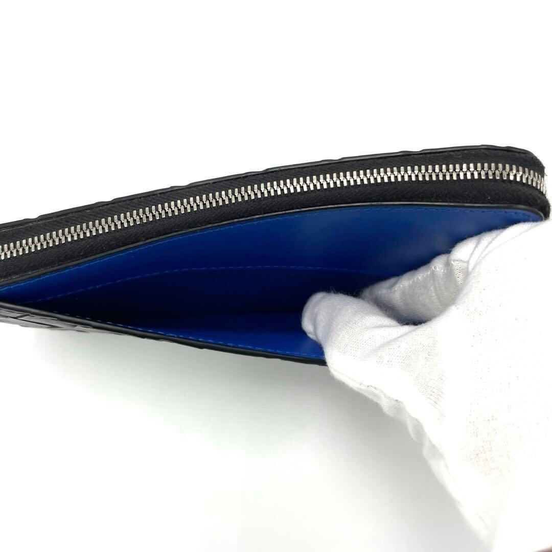 No.214 ボッテガヴェネタ マキシイントレチャート 長財布 ラウンドファスナー マルチカラー ブラック×ブルー バイカラー メンズ 現行品