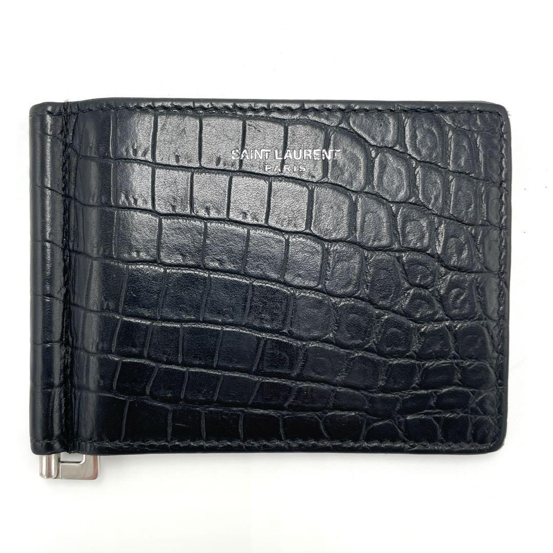 No.215 SAINTLAURENT サンローラン マネークリップ クロコ型押し ビルクリップウォレット ART378005 ブラック レザー メンズ ユニセックス