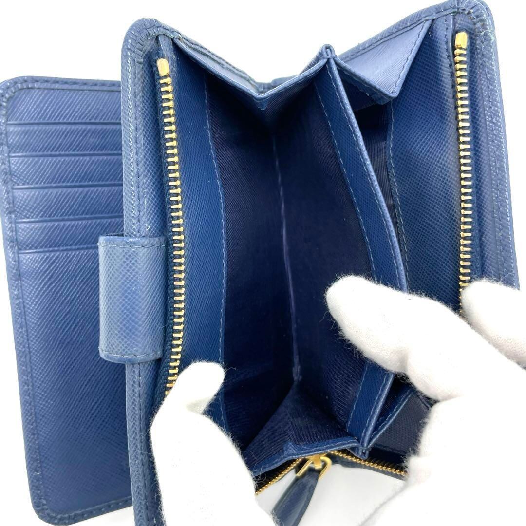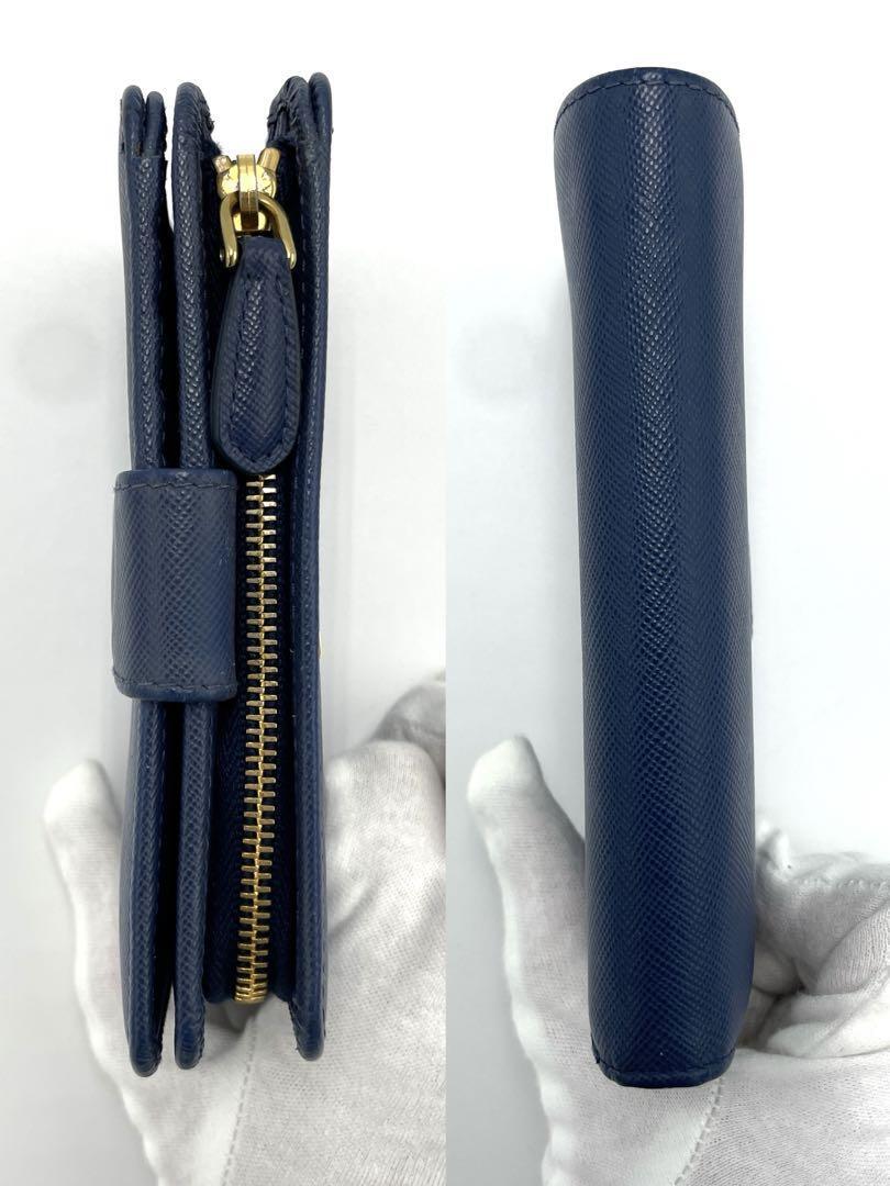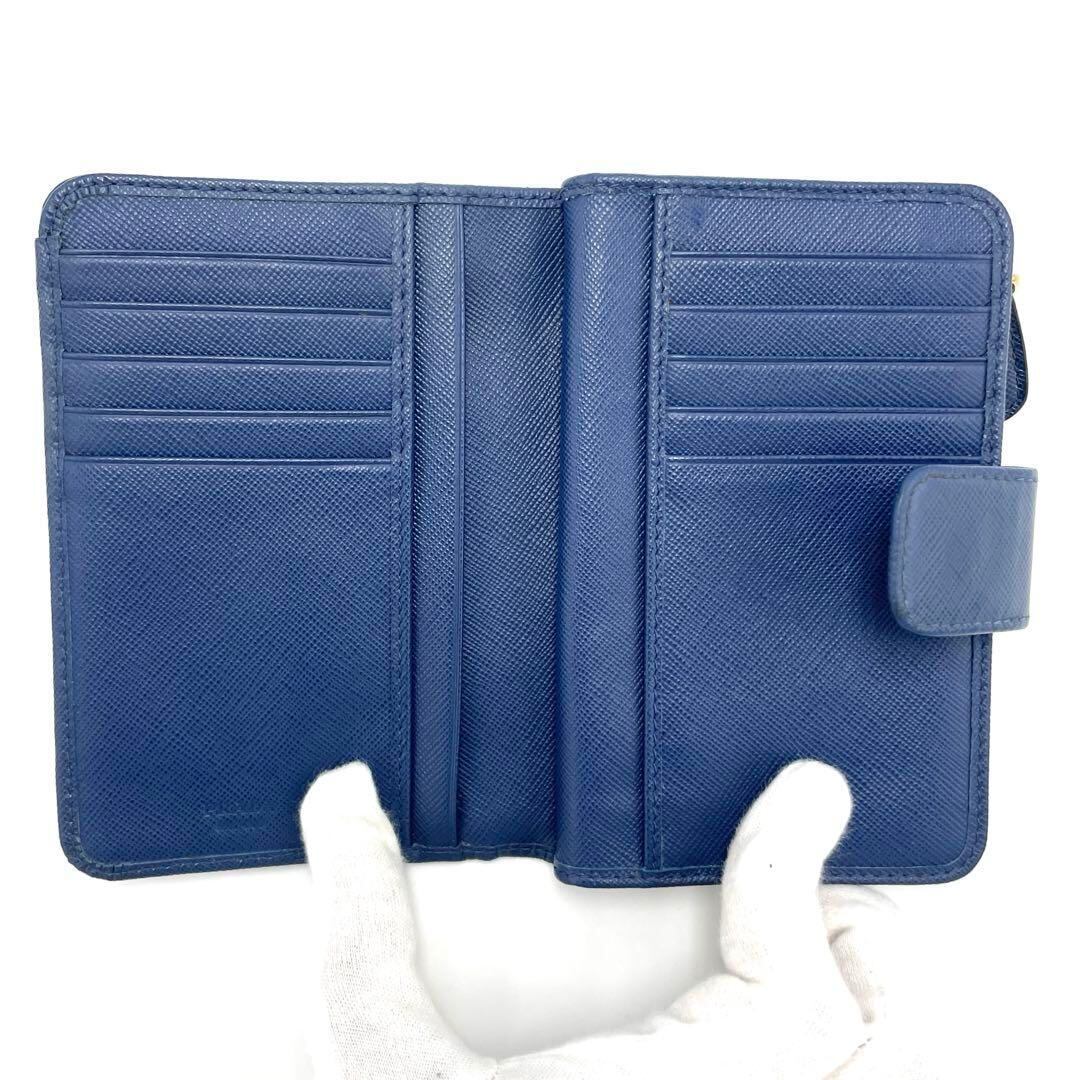 No.217 【美品】PRADA プラダ サフィアーノ 二つ折り財布 1M1225 ブルー PORTAFOGLIO LAMPO レザー メンズ レディース ユニセックス