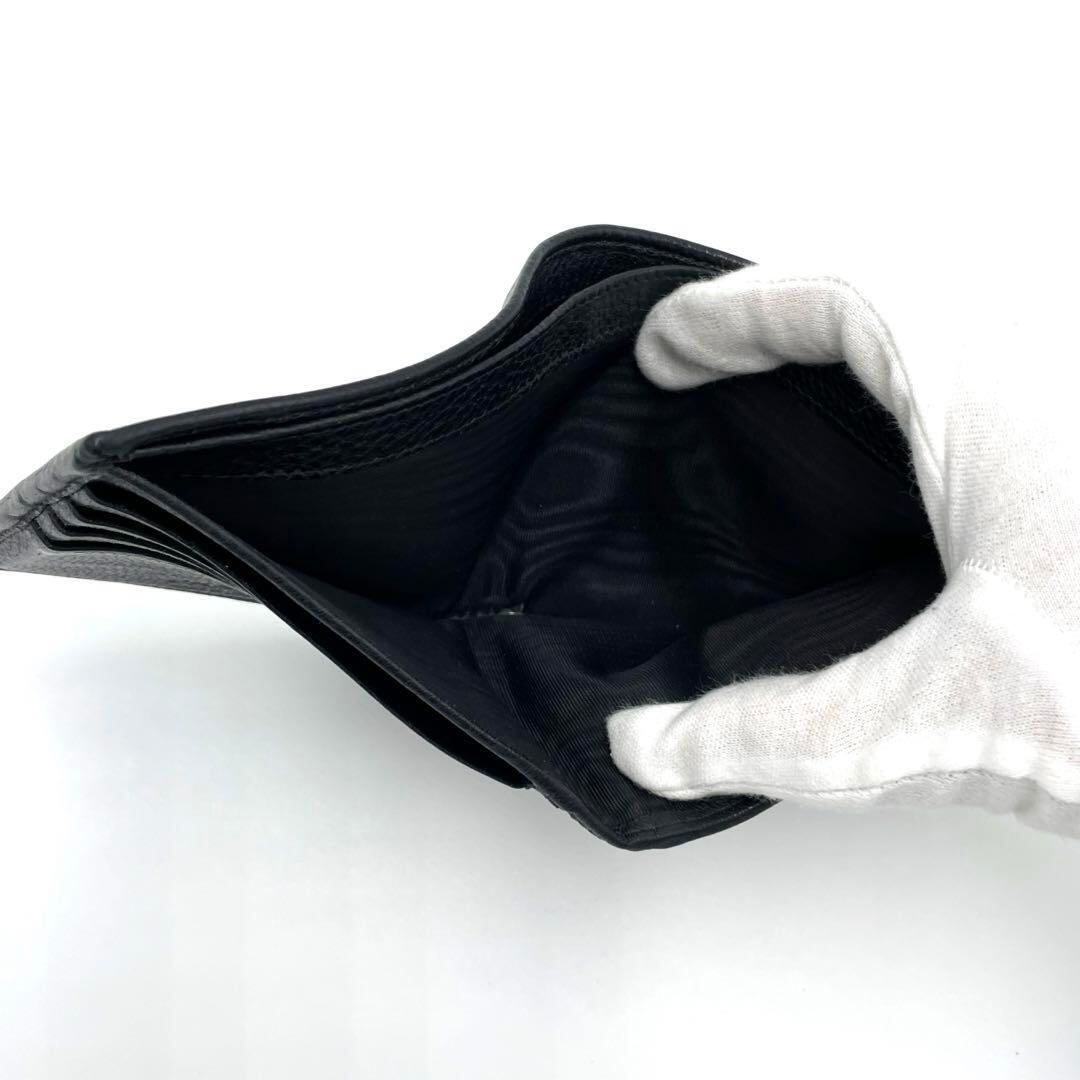 No.218 超人気商品☆PRADA プラダ サフィアーノ 二つ折り財布 コンパクトウォレット ブラック レザー ロゴ 小銭入れ付 メンズ ユニセックス