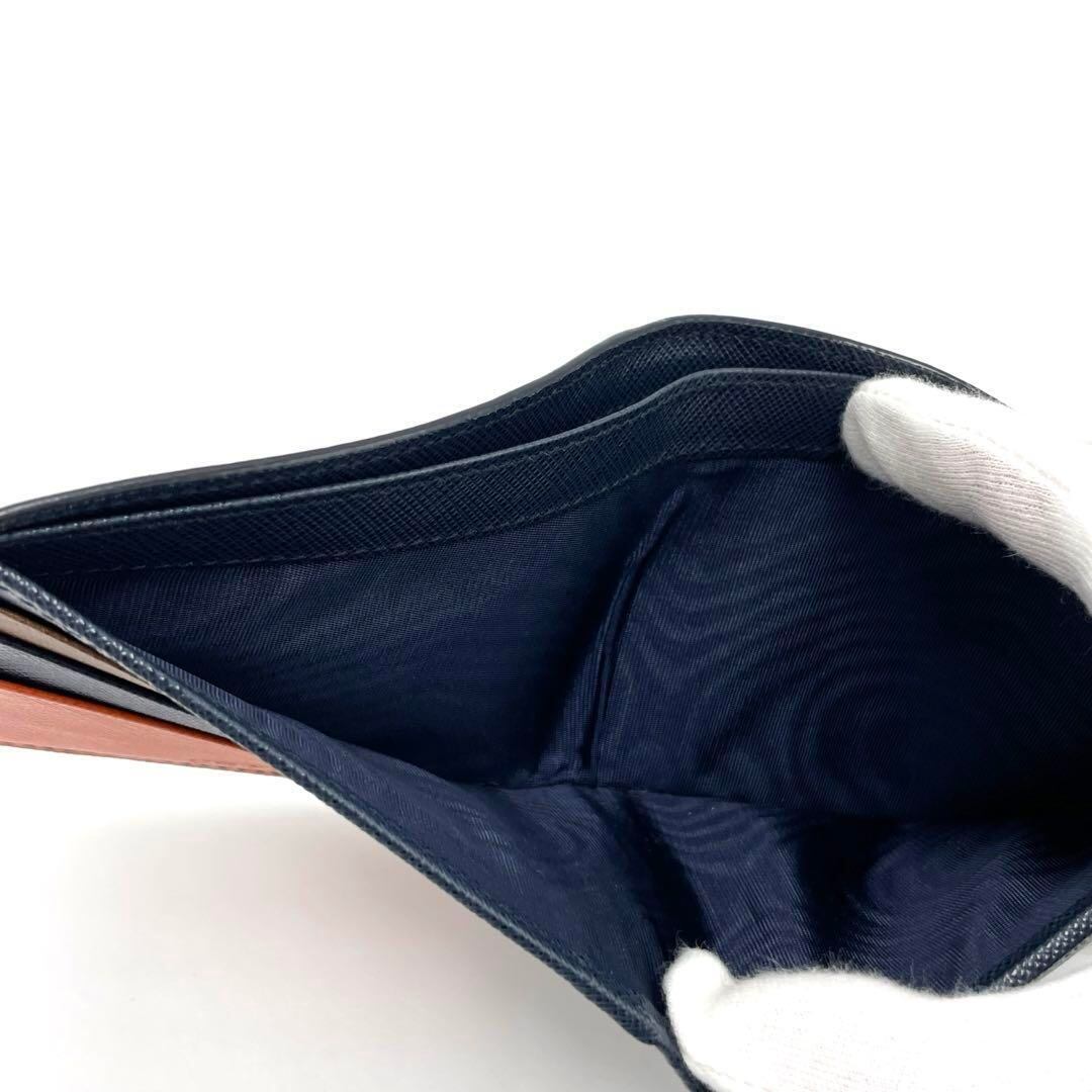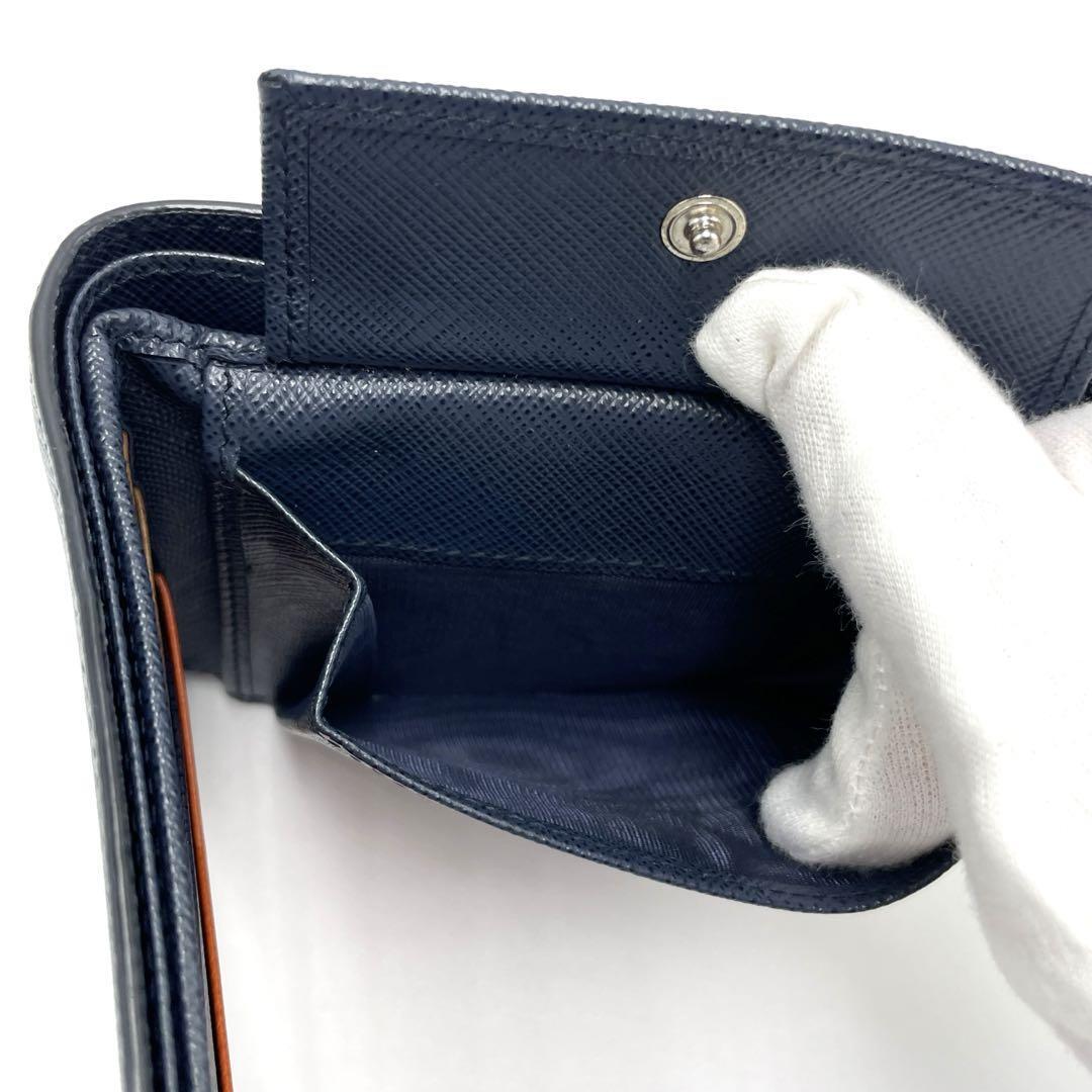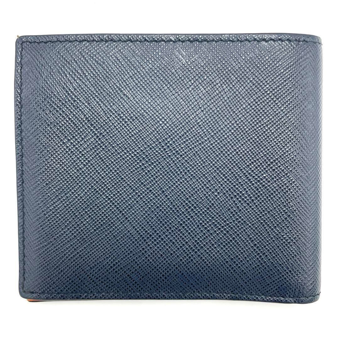 No.224 早い者勝ち☆【超美品】PRADA プラダ サフィアーノ 二つ折り財布 マルチカラー ネイビー×オレンジ×ブラウン メンズ ユニセックス