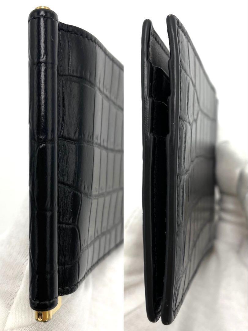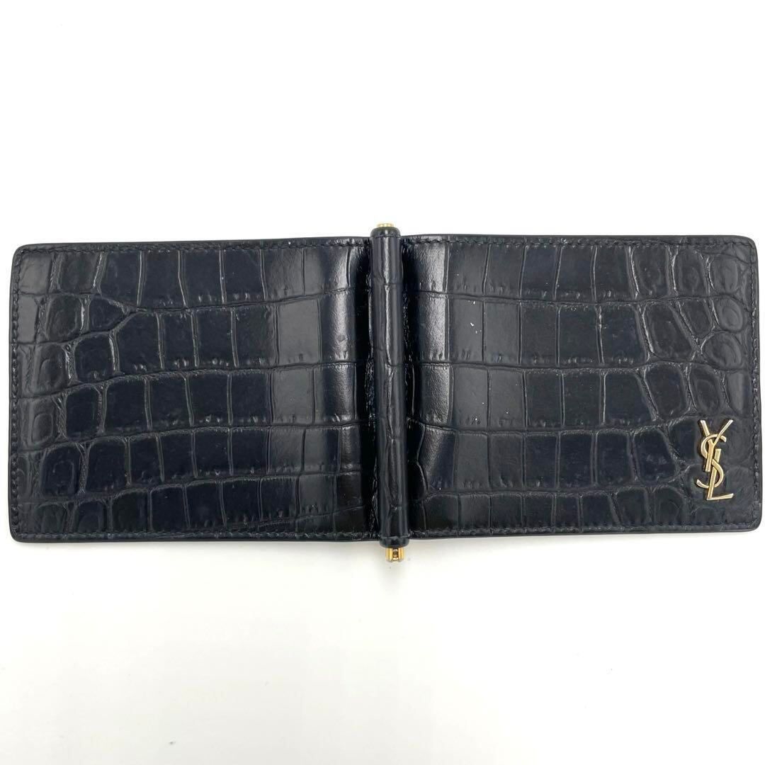 No.231 超人気☆【美品】SAINTLAURENT サンローラン マネークリップ クロコ型押し タイニー カサンドラ YSLライン ART607738 ブラック