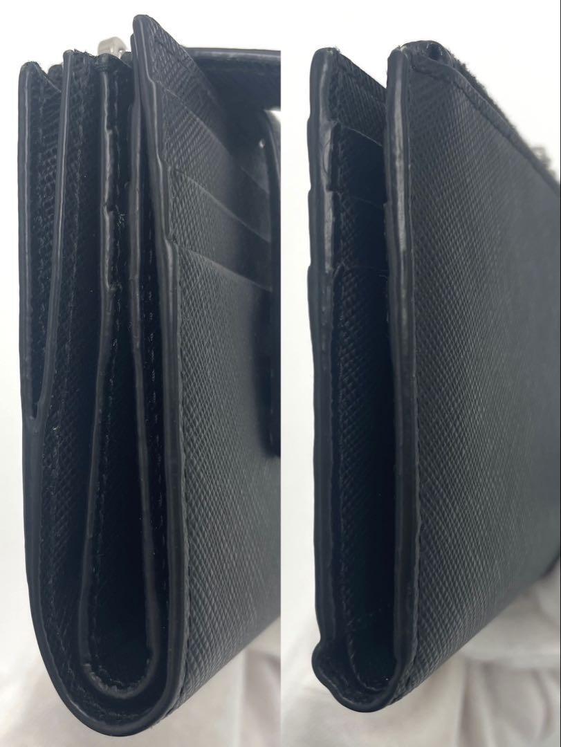 No.240 超人気☆【超美品】PRADA プラダ 二つ折り財布 カードホルダー 2MC066 サフィアーノ トライアングル ブラック メンズ ユニセックス