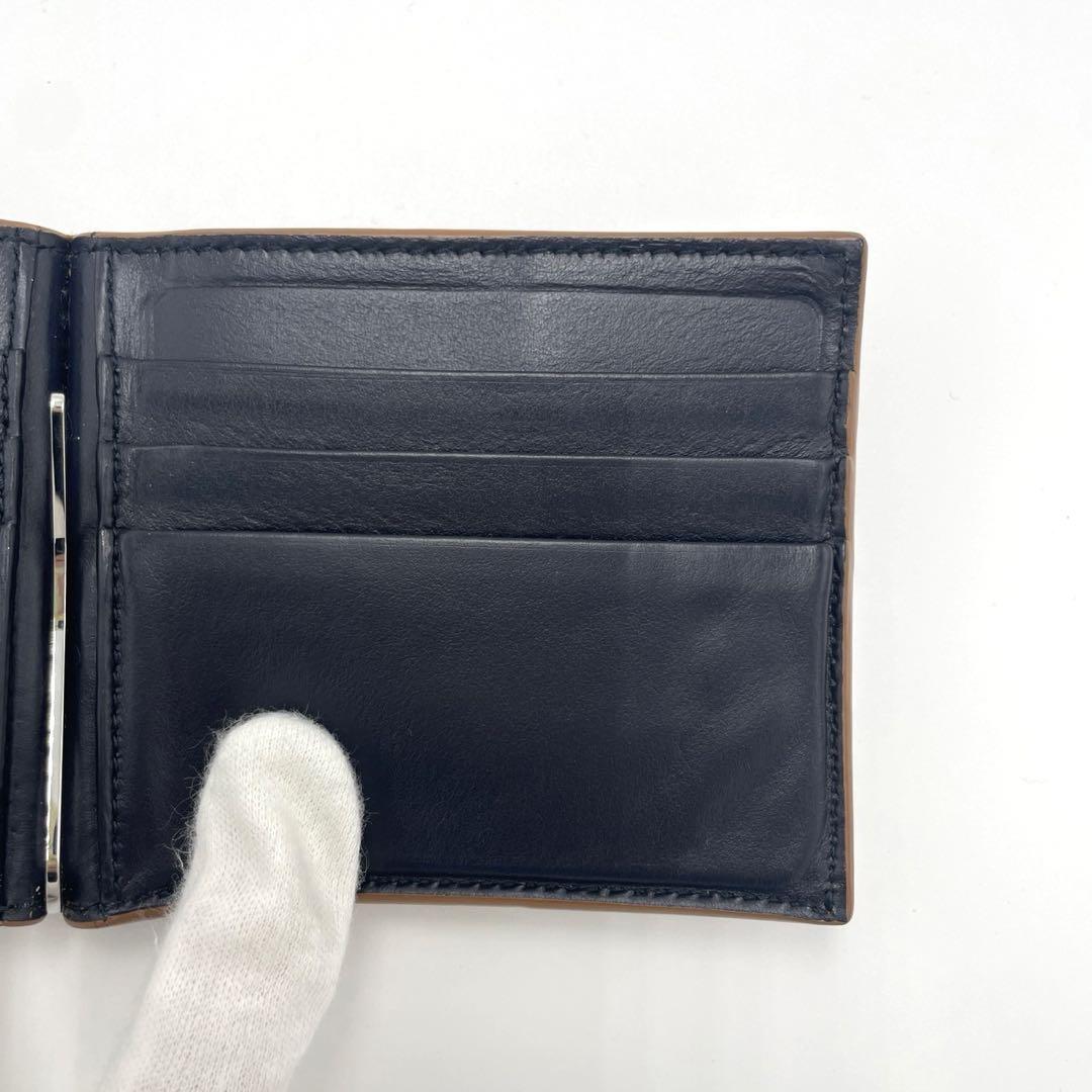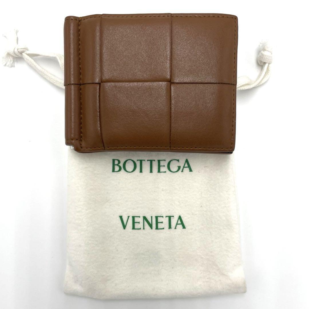 No.241 早い者勝ち☆美品☆ボッテガヴェネタ マネークリップ カセット ブラウン×ブラック バイカラー マキシイントレチャート カセット